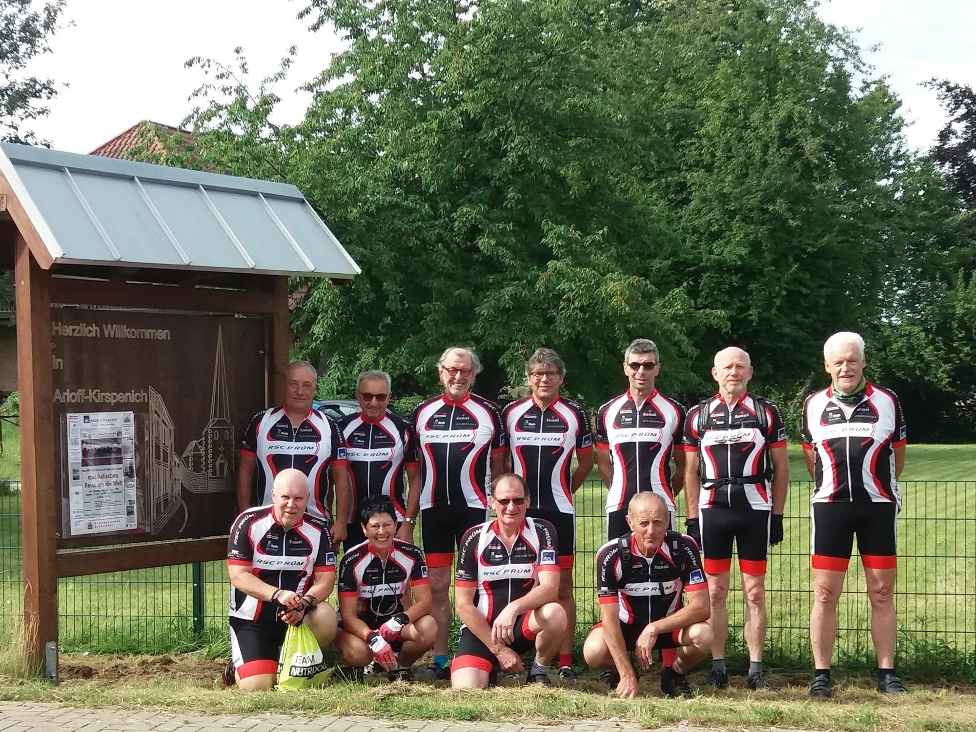 Seit vielen Jahren unternehmen die Senioren des RSC Prüm Rennrad-Ausflüge in die näheren und weitere Umgebung. Nachdem die Grundlage bereits durch die Trainingsfahrten in der Frühjahrs-Trainingswoche gelegt und bei Mittwochstraining weiter aufgebaut ist, wird die jeweilige Sommertour geplant. Diesmal wurde als Austragungsort Bad Münstereifel ausgesucht. Wie das im RSC Prüm so üblich ist, verteilt man die Aufgaben auf mehrere Schultern. Einer sucht die Touren aus, ein anderer bucht das Hotel und fürs Navi ist auch ein Spezialist vorhanden. Diesmal starteten die Teilnehmer von Ihre jeweiligen Wohnorten zum Treffpunkt in Stadtkyll. Nach einer Tasse Kaffee führte von hier die Tour über eine schöne Route nach Bad Münstereifel. Diese Streckenlänge der Anreise war im Schnitt 75 km lang. Drei weitere Touren: eine von 87 km Heimbach- Nideggen- Zülpich, eine 92 km Scheuern- Rheinbach- Heimerzheim - Zülpich, und die Königsetappe mit 108 km über Effelsberg- Kreuzau- Altenahr- Remagen, Birresdorf, Rheinbach und jeweils zurück Hotel in Arloff. Die Königsetappe wurde von Roland Schüttler geführt, er ist vielen RSC-ler als exzellenter Radsportler und Giude bekannt. Insgesamt zählte der Höhenmesser nach 5 Tagen 3.470 HM an. Ohne große Zwischenfälle kamen alle Radsportler von den sehr schönen Touren nach Hause. Erste Planungen für die Senioren-Sommertour im nächsten Jahr sind schon in die Wege geleitet. Die Rückfahrt von nochml guten 68 km führte die Kollegen aus der Prümer Kante über Blankenheim. Und die aus Richtung Gerolstein wählten die Routenführung für die Heimreise über die Wasserscheide und das Ahrtal.