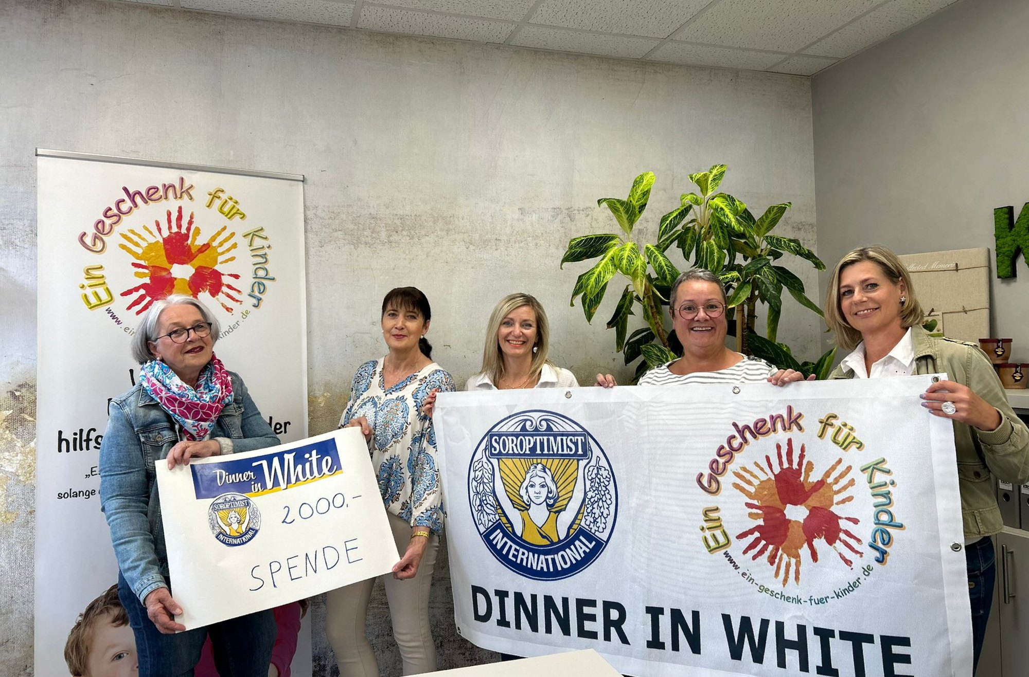 Der Erlös der Veranstaltung "Dinner in White in Prüm" des Soroptimisten-Club Bitburg-Prüm brachte eine Spendensumme in Höhe von 2.000 Euro auf. In diesem Jahr wurde die Spendensumme an den Verein "ein Geschenk für Kinder" übergeben. Die Spendensumme wurde stellvertretend an Ingrid Kirsch und Anette Schalz übergeben.