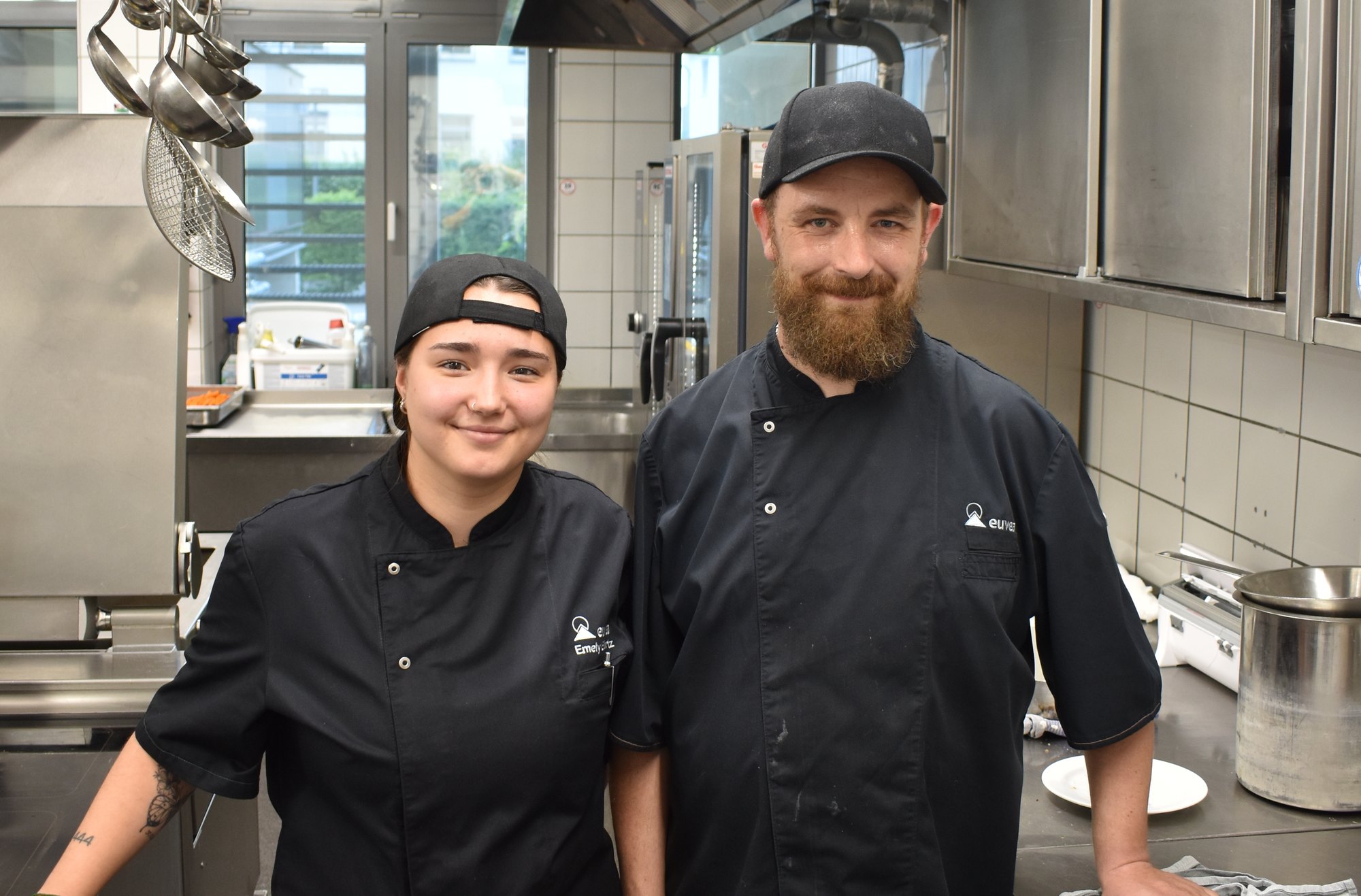 Ein Arbeitsumfeld, in dem jeder seine individuellen Fähigkeiten einbringen kann, ist das zentrale Ziel des Euvea Hotels, wie uns Hotelleiter Thomas Metzger berichtet. Die Arbeitsabläufe richten sich nicht nach starren Regeln, sondern nach den jeweiligen Möglichkeiten der Mitarbeitenden. Das schätzt auch Johannes, der erst seit wenigen Monaten im Hotel arbeitet und zuvor in einer Werkstatt für Menschen mit Beeinträchtigungen tätig war. Gerade bereitet er gemeinsam mit Köchin Emely das Mittagessen für die Hotelgäste vor. "In der Küche macht mir die Abwechslung am meisten Spaß. Da hat man viele Freiheiten. Natürlich muss aber alles wie geplant auf den Tisch kommen", erzählt Johannes. Durch das Miteinander im Team lernen die Kolleginnen und Kollegen täglich voneinander – das gilt gleichermaßen für diejenigen mit und ohne Beeinträchtigung. "Ich wollte eine Ausbildung im sozialen Bereich machen", erzählt Angelina, eine Auszubildende im Bereich Hauswirtschaft. "Das Soziale macht mir Spaß. Man lernt, mit verschiedenen Menschen umzugehen, und das macht an meinem Job so viel Freude."
