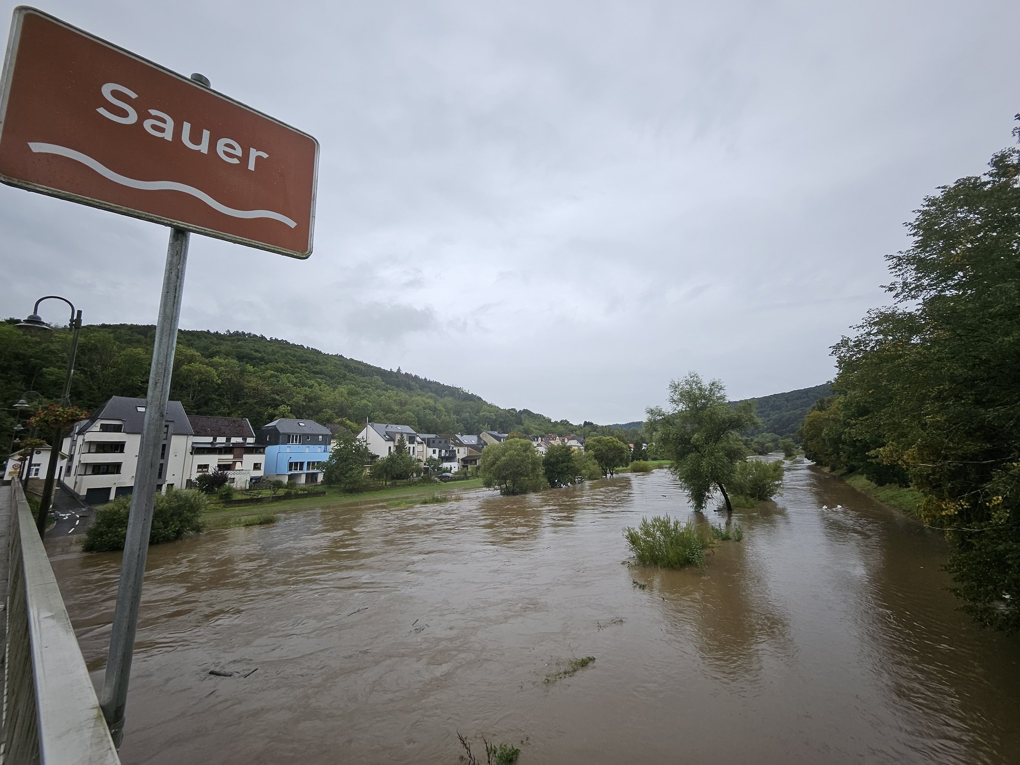 Der Fluss Sauer zeigte eindrucksvoll die Wucht der Regenmassen. Binnen 14 Stunden stieg der Pegel von 58 Zentimetern (21 Uhr) auf 2,79 Meter (11 Uhr). Prognosen des Hochwasservorhersagedienstes Rheinland-Pfalz rechneten mit einem Höchststand von 2,86 Metern am Nachmittag - damit blieb das Ereignis knapp unterhalb eines zweijährlichen Hochwassers. Auch Prüm, Nims und Kyll führten deutlich mehr Wasser als üblich.