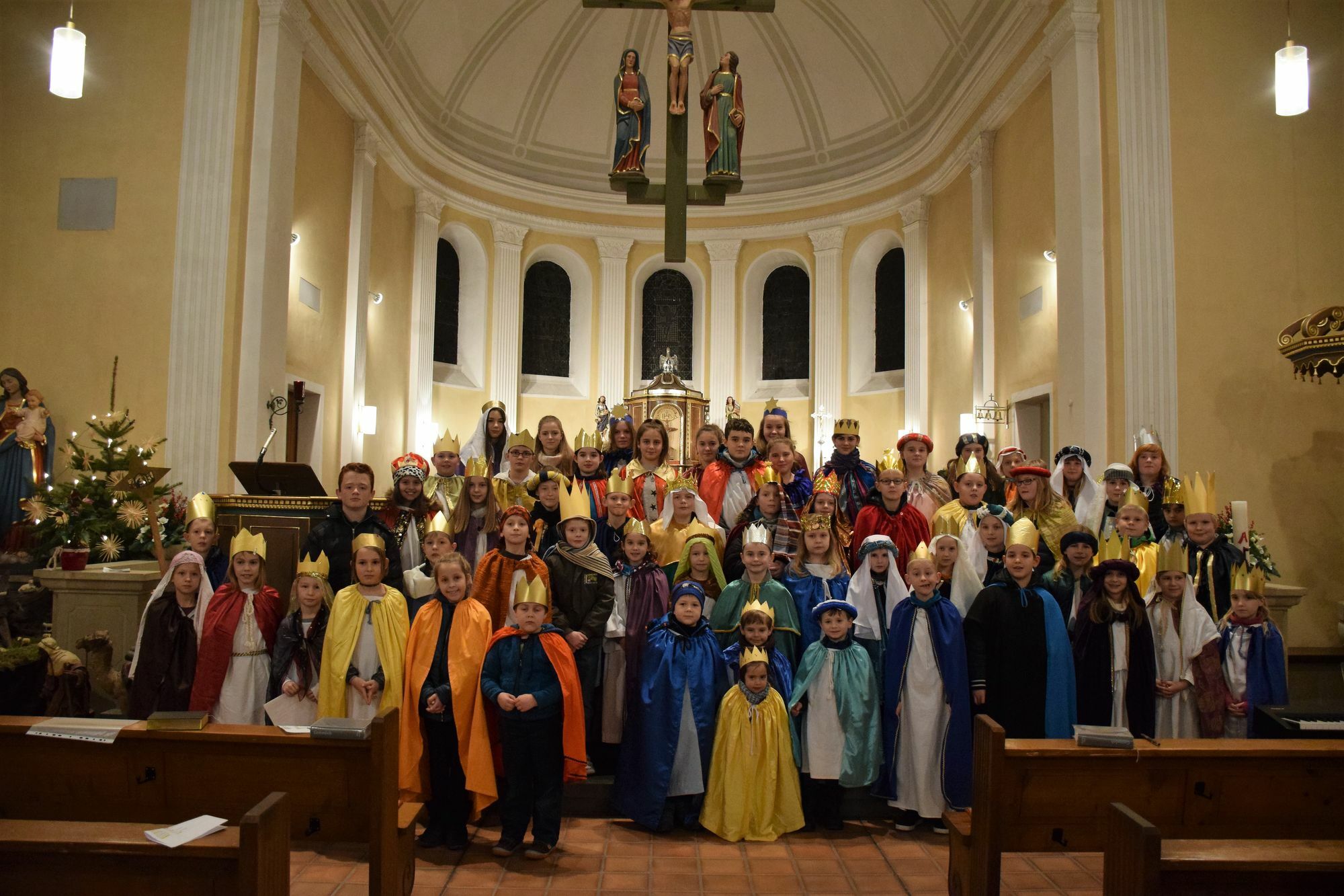 Sternsinger aus den Pfarreien Messerich, Meckel, Dockendorf und Wolsfeld wurden zum ersten Mal gemeinsam in einem feierlichen Gottesdienst von Pater Hüging (Biesdorf) ausgesandt. Diesen Gottesdienst gestalteten die Sternsinger aller Dörfer mit. Gesanglich unterstützt wurden sie von einer Gruppe aus Meckel und Messerich. Foto: privat