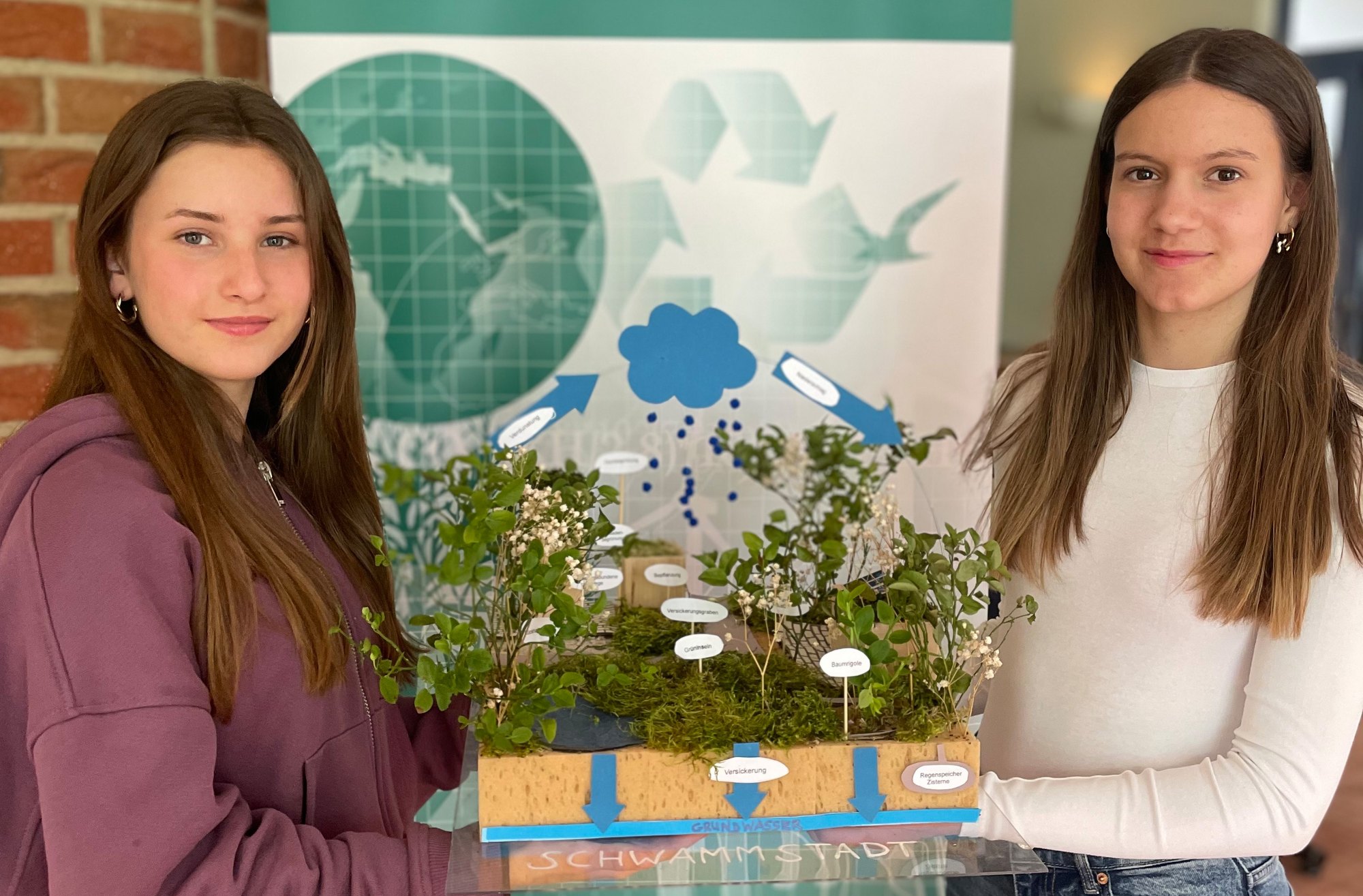 Für Louana Bretz und Carla Thielen hätte es nicht besser laufen können. Die Absage beim Jugend-forscht-Projekt hatte sie nicht entmutigt, sondern im Gegenteil ihren Ehrgeiz erweckt. »Wir haben uns noch einmal dran begeben und unser Konzept weiterentwickelt«, sagt Carla, die wie ihre Freundin auch davon überzeugt ist, dass man mit einfachen Maßnahmen viel fürs Klima erreichen kann. Sie untersuchten zum Beispiel, wie sich die unterschiedlichen Abdeckungsarten von Böden auf die Wasserspeicherung bzw. Verdunstung auswirkt, und zeigten eindrucksvoll Unterschiede im Erwärmungsverhalten von Wiesen im Gegensatz zu (Pflaster-)Steinen bei Sonneneinstrahlung. Ihr Fazit: "Wenn man seinen Garten so wenig wie möglich versiegelt und stattdessen versickerungsfähig gestaltet (offener Boden speichert Wasser wie ein Schwamm), trägt man damit zum natürlichen Wasserkreislauf und somit zum Erfüllen der globalen Nachhaltigkeitsziele bei. Bäume und Sträucher spenden im Sommer Schatten, speichern Wasser und Kohlenstoffdioxid und kühlen unsere Städte."