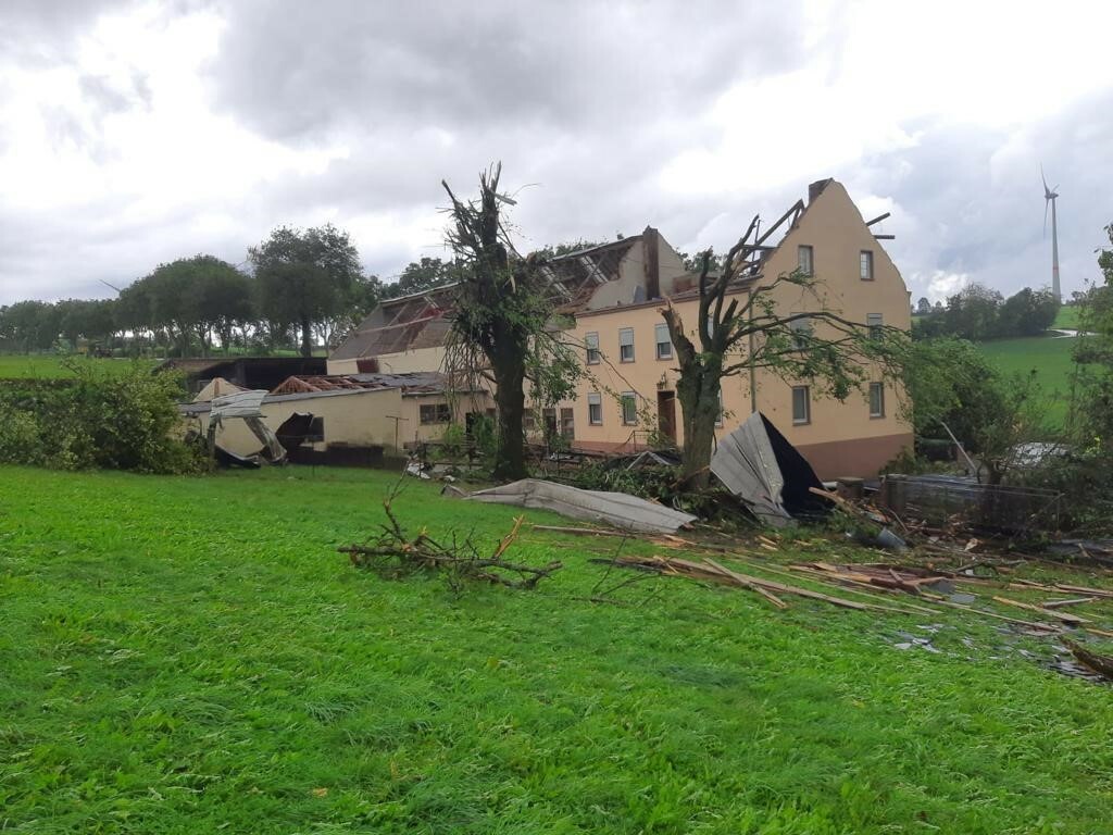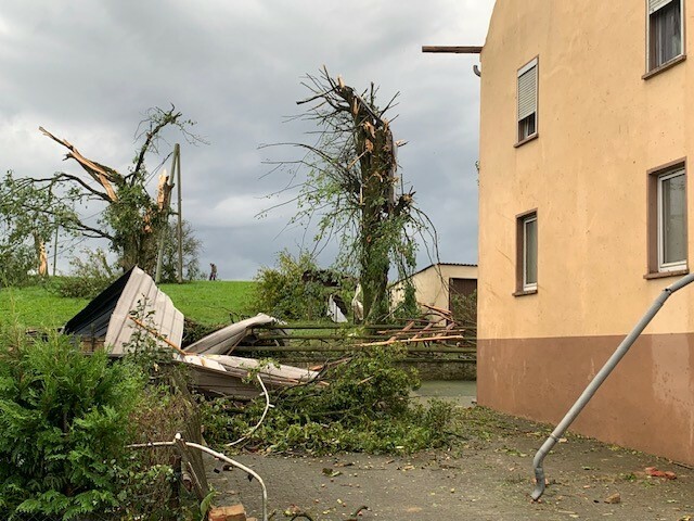 Am 21. September gegen 16 Uhr überraschte ein starkes Unwetter den Eifelort Nusbaum. Der plötzlich aufgetrene Wirbelsturm beschädigte nach Angaben der Einsatzkräfte insgesamt 15 Häuser. Eine Verletzung von Personen ist derzeit nicht bekannt, so der Abschlussbericht der Feuerwehr VG Südeifel.Über 100 Einsatzkräfte der umliegenden Verbandsgemeinden waren bis 21:45 Uhr im Einsatz. Feuerwehr der Verbandsgemeinde Nusbaum und Wetterexperten sprechen offiziell von einem Tornado as Grund für die Verwüstung. Die beschädigten Häuser wurden durch Dachdecker Firmen umgehend gesichert und die Wiederaufbauarbeiten werden aufgenommen.