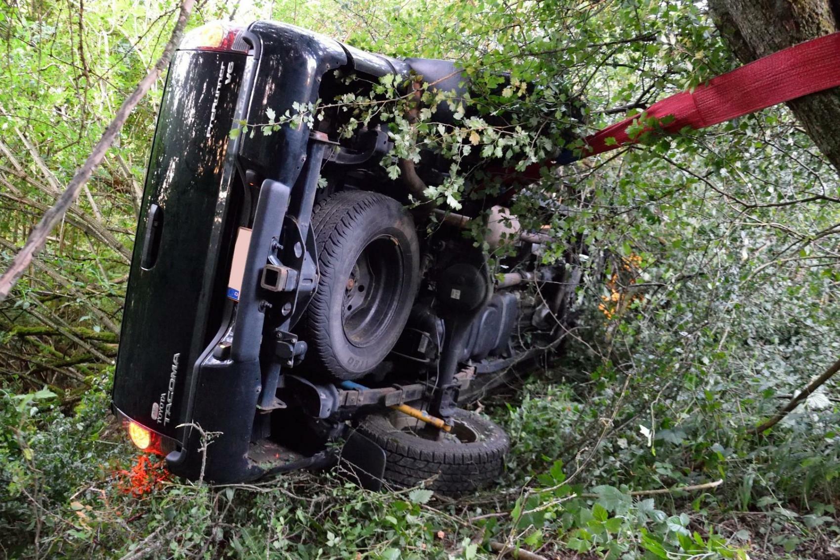 Am frühen Sonntagmorgen gegen 5 Uhr meldete ein Verkehrsteilnehmer einen schweren Verkehrsunfall auf der K39 zwischen Speicher und Orenhofen. Die Feuerwehren aus Speicher und Orenhofen fanden an der Unfallstelle einen Toyota Pick-Up vor, der rund 50 Meter weit in den Wald geschleudert worden war. Brems- und Schleuderspuren im Bereich der Unfallstelle nach zu urteilen, war der schwere Pick-Up nach einer Rechtskurve wegen nicht angepasster Geschwindigkeit nach links von der Fahrbahn abgekommen und eine Böschung herabgestürzt. Das Fahrzeug mähte bei seinem Sturz in den Wald mehrere kleinere Bäume um, bevor es zwischen Hecken und Bäumen auf der Fahrerseite im Wald zum Liegen kam. Die herbeigeeilten Rettungskräfte fanden allerdings niemanden mehr im Fahrzeug vor. Auch der Einsatz einer Wärmebildkamera brachte die Feuerwehrleute nicht weiter und führte nicht zum Auffinden des Fahrers. Da das Fahrzeug auf einen US-Amerikaner zugelassen ist, wurde auch die Military-Police aus Spangdahlem alarmiert, um gemeinsam mit der Polizei Bitburg weitere Ermittlungen durchzuführen und den flüchtigen Fahrer zu finden. Im Einsatz waren am frühen Sonntagmorgen 21 Kräfte der Feuerwehren aus Speicher und Orenhofen zusammen mit dem Notarzt aus Trier-Ehrang, das Malteser Hilfswerk aus Welschbillig und das DRK aus Speicher.