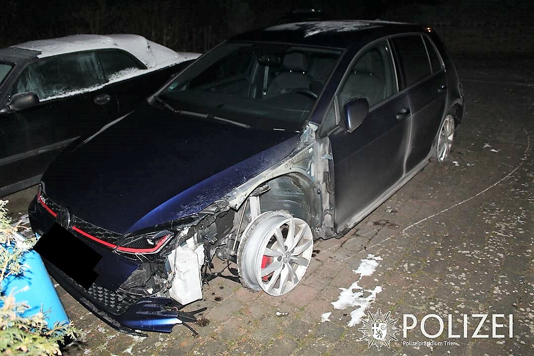 Samstagnacht (19. Januar) ereignete sich im Dienstgebiet der Polizeiinspektion Bitburg eine "Unfallflucht" der besonderen Art. Ein VW Golf kam auf der B 257 in einer Rechtskurve von der Fahrbahn ab und prallte gegen die Schutzplanke. An dem PKW und der Schutzplanke entstand erheblicher Sachschaden. Auf der Fahrerseite des PKW platzten beide Reifen. Der 33 Jahre alte Unfallfahrer setzte auf zwei intakten Reifen die Fahrt bis zu seinem ca. 40 Kilometer entfernten Wohnort fort und fuhr dabei auch über eine Autobahn. Er entfernte sich somit unerlaubt von der Unfallstelle. Die ermittelnden Polizeibeamten der Polizeiinspektion Bitburg waren bei der Aufklärung des Sachverhalts vor keine unlösbare Aufgabe gestellt. Sie folgten den Kratzspuren der Felgen in der Asphaltdecke bis zur Wohnanschrift des Unfallfahrers und fanden dort den unfallbeschädigten Wagen vor. Polizeibeamte der Polizeiinspektion Prüm trafen den Fahrer dort am Morgen an. Da dieser noch unter Alkoholeinfluss stand, wurde ihm eine Blutprobe entnommen. Sein Führerschein wurde sichergestellt.