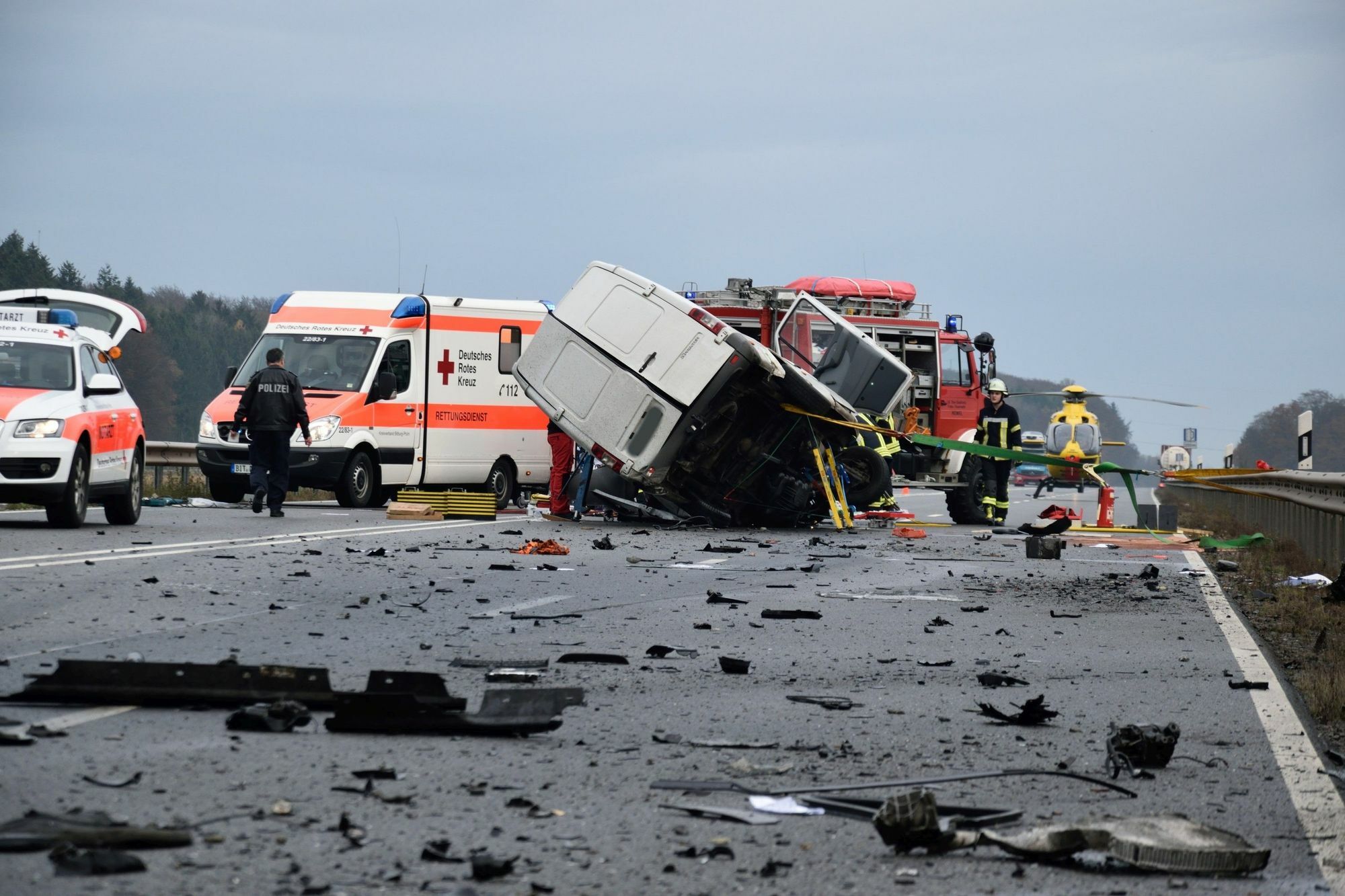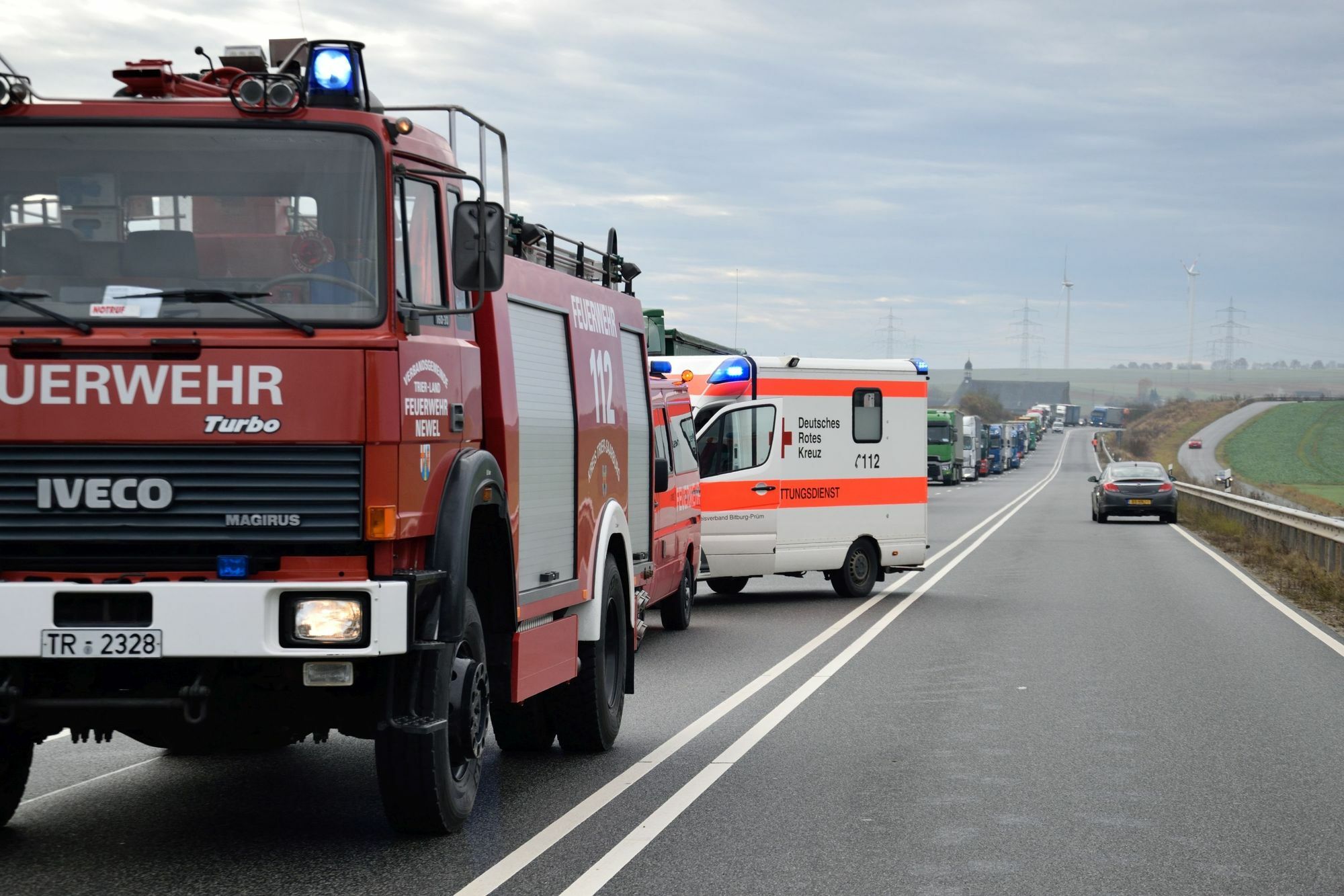 Die Sperrung der B 51 dauert immer noch an. Eine Umleitungsstrecke ist eingerichtet. Nach derzeitigen Erkenntnissen war eine 36-jährige Frau mit einem PKW in Richtung Trier unterwegs und wollte trotz trotz doppelter durchgezogener Fahrstreifenbegrenzung einen vorausfahrenden niederländischen PKW überholen. Dabei berührte ihr Fahrzeug den niederländischen PKW leicht am Heck, weshalb die PKW-Fahrerin die Kontrolle über ihr Fahrzeug verlor und nach links in den dort zweispurigen Bereich des Gegenverkehrs geriet. Dort kollidierte der PKW mit einem entgegenkommenden Transporter. Die Fahrerin des PKW und der Fahrer des Transporters mussten durch die Feuerwehr aus ihren Fahrzeugen geborgen werden und erlitten lebensbedrohliche Verletzungen. Der Fahrer des niederländischen PKW blieb unverletzt. Im Einsatz befanden sich das DRK, der Rettungshubschrauber aus Wittlich sowie mehrere Feuerwehren der umliegenden Ortschaften. Zur Klärung des genauen Unfallherganges wird ein Gutachten erstellt. Die Arbeiten des Gutachters an der Unfallstelle sind weitgehend abgeschlossen. Anschließend beginnt die Bergung der Fahrzeuge und Reinigung der Fahrbahn durch eine Spezialfirma. Diese Arbeiten werden schätzungsweise bis 16 Uhr andauern. Fotos: Siko