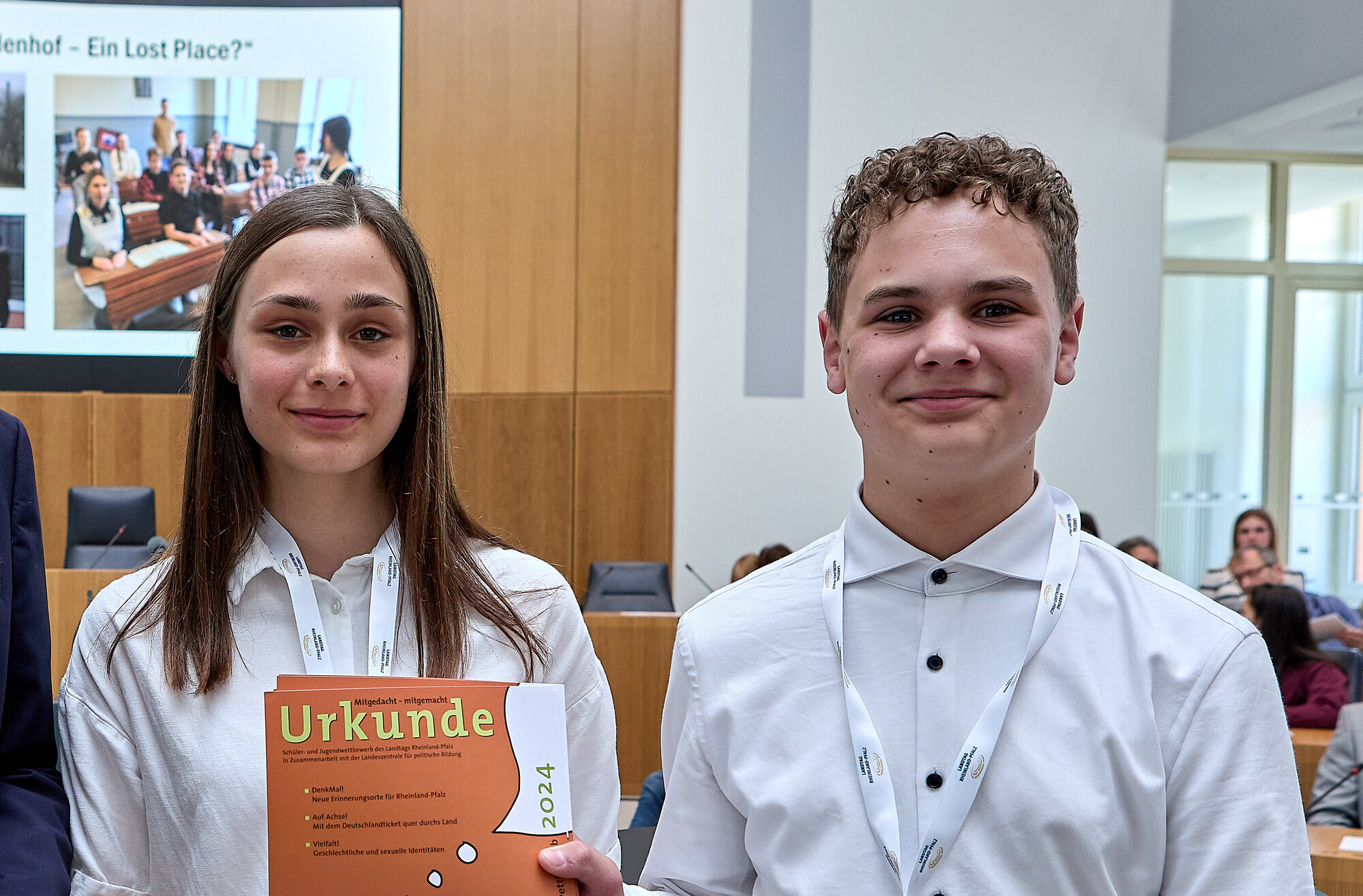Für ihren Beitrag in der Kategorie "DenkMal! Neue Erinnerungsorte für Rheinland-Pfalz" wurde die Klasse 9a des Staatlichen Eifel-Gymnasiums im Plenarsaal des Landtags ausgezeichnet.
