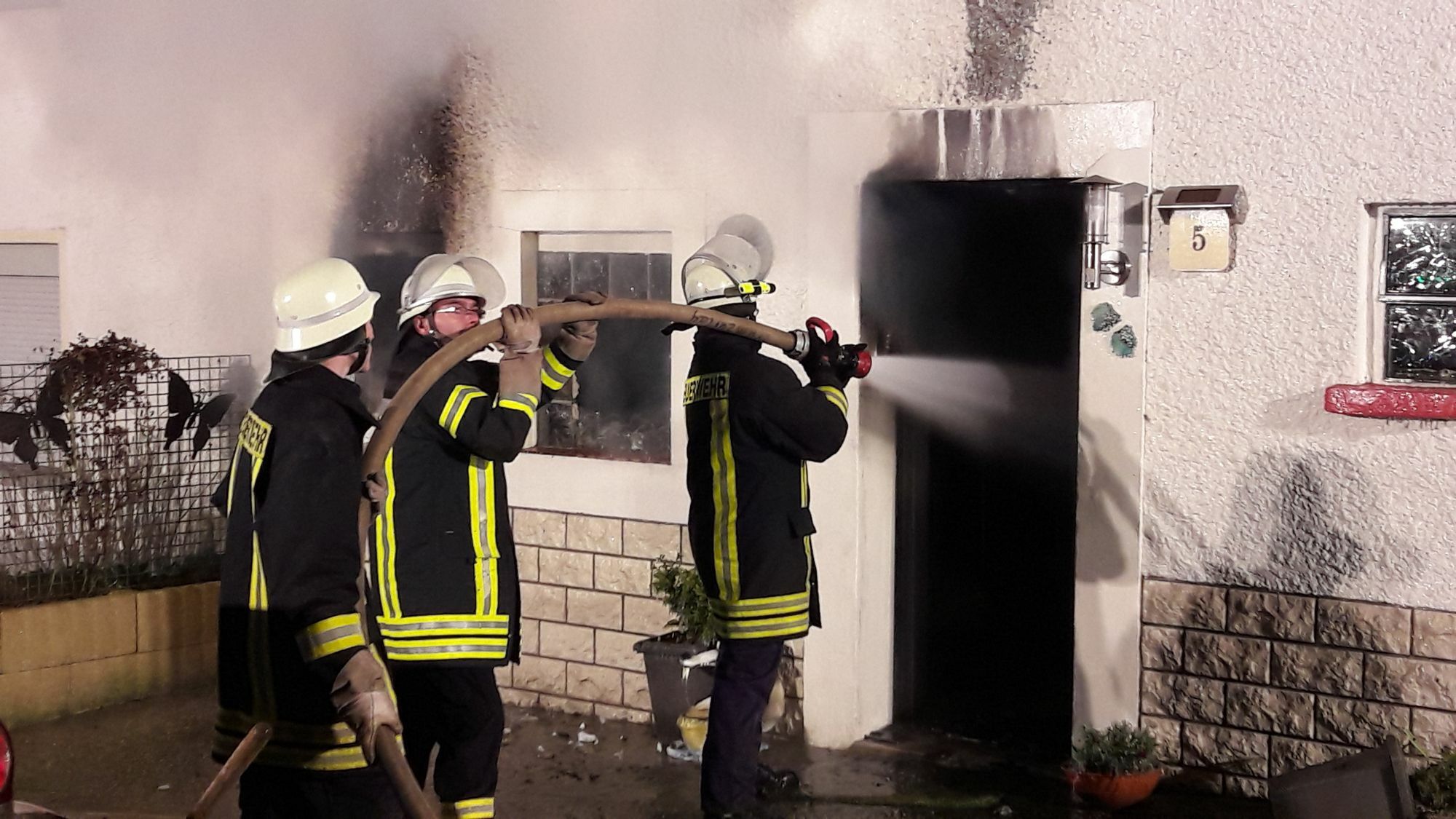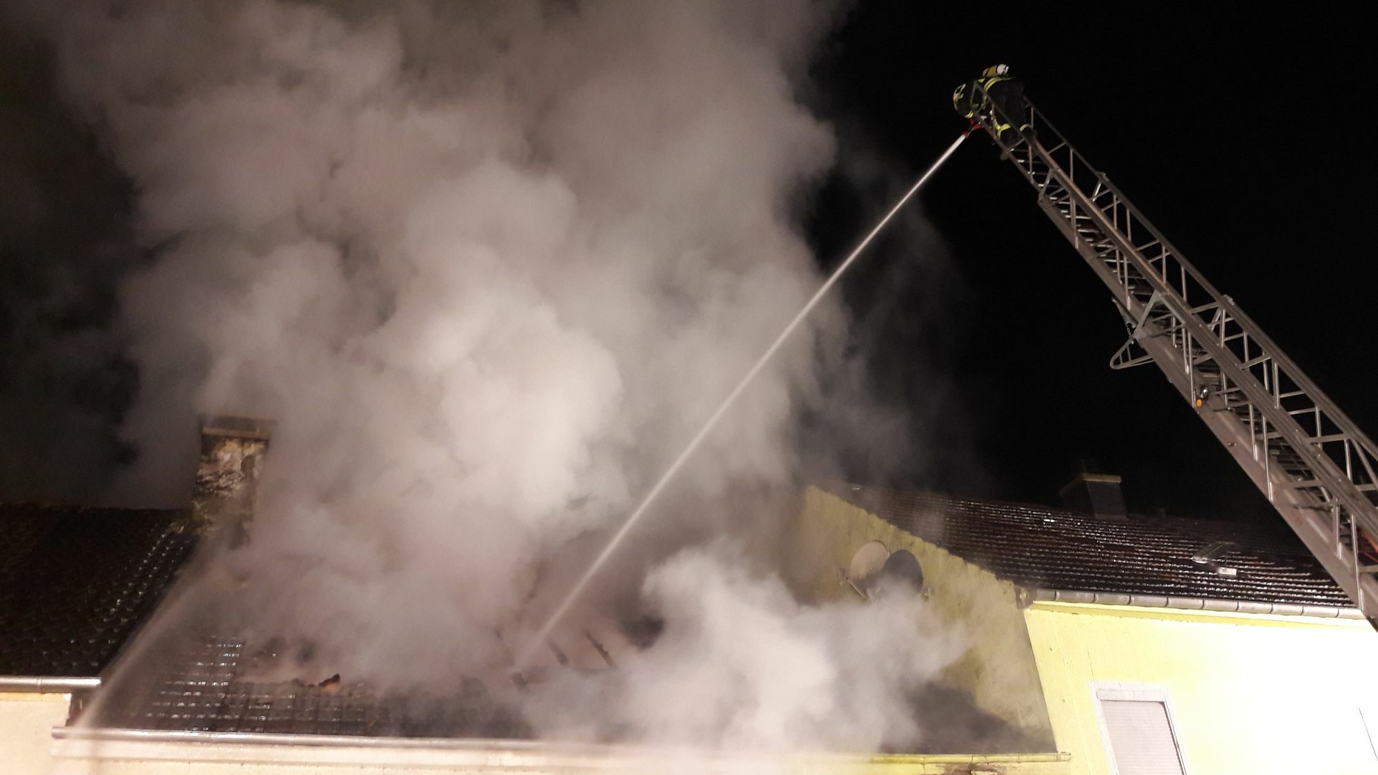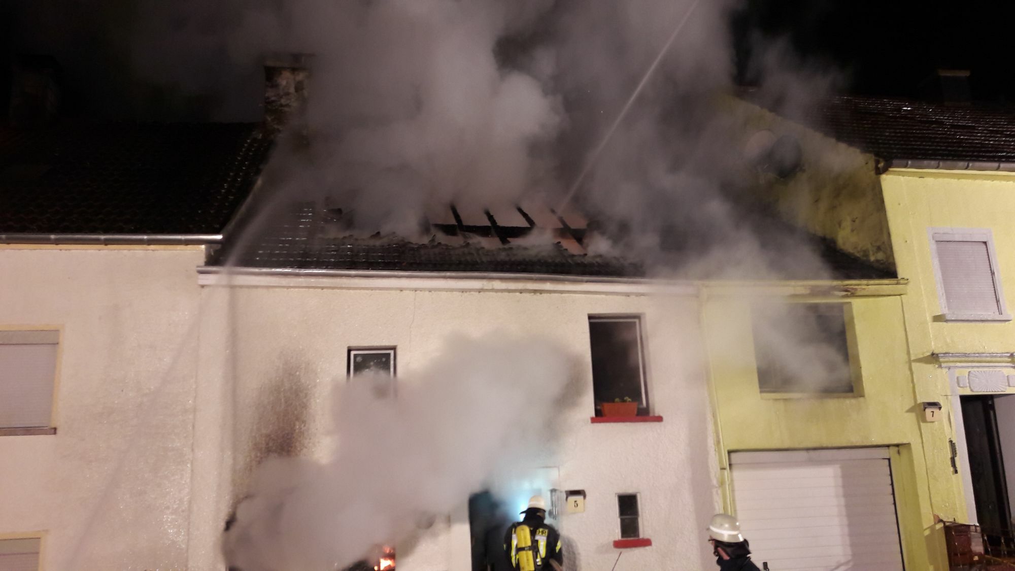 In der Kapellenstraße in Prümzurlay ist vergangene Nacht ein Wohnhaus ausgebrandt. Das Feuer brach gegen 2.30 Uhr aus. Nachbarn retteten die beiden Hausbewohner aus den Flammen. Eine Frau musste wegen ihrer schweren Brandverletzungen in eine Spezialklinik nach Ludwigshafen gebracht werden. Um den Brand zu löschen, legte die Feuerwehr eine mehrere hundert Meter lange Wasserleitung aus der Prüm zu dem brennenden Haus. Am frühen Morgen hatte sie das Feuer unter Kontrolle und die Nachlöscharbeiten konnten beginnen. Unter schwerem Atemschutz kamen 16 Atemschutztrupps im Inneren des Hauses und zwei Drehleitern von außen zum Einsatz. Schwierigkeiten bereiteten den Einsatzkräften die Minusgrade. Das Löschwasser gefror auf dem Vorhof und der Straße. Der Landebetrieb Mobilität musste mit einem Streufahrzeug anrücken und den Einsatzkräften große Mengen Streusalz abkippen. In Eimern abgefüllt wurde das Salz großflächig verteilt. Mit Sonnenaufgang war das Feuer gelöscht, eine Brandwache wurde eingerichtet. Mit einer Wärmebildkamera werden mögliche Glutnester ausgemacht. Wie es zu dem Feuer kommen konnte, steht noch nicht fest. Brandermittler können erst zu einem späteren Zeitpunkt das völlig ausgebrannte Haus betreten. Auch zwei angrenzende Wohnhäuser wurden bei dem Feuer durch Hitzeentwicklung und Löschwasser beschädigt. Der Schaden wird auf einen hohen sechsstelligen Bereich eingeschätzt. Im Einsatz waren mehr als 100 Einsatzkräfte von FEZ und Wehrleitung Irrel, die Feuerwehren aus Prümzurlay, Irrel, Minden, Niederweis, Holsthum, Ernzen, Ferschweiler, Alsdorf, Bitburg und Neuerburg. Ebenso das DRK Echternacherbrück und Bitburg mit Notarzt, das DRK OV Südeifel, die Polizei Bitburg, die Straßenmeisterei Irrel und der Energieversorger RWE. Fotos: Agentur Siko