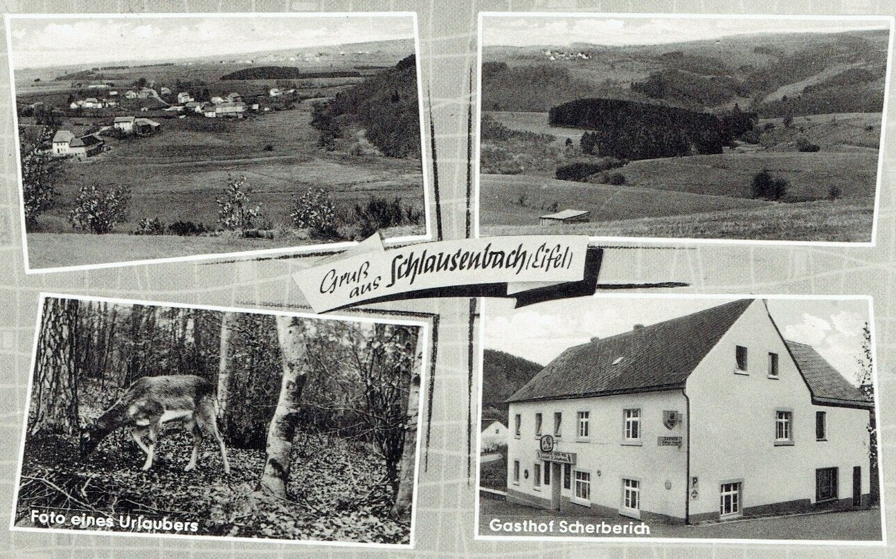 Zunächst einmal: Wo befinden wir uns? Das winzige Dörfchen Schlausenbach ist zwischen Prüm und Bleialf in der Westeifel am Nordwestrand der Schneifel gelegen. Es befindet sich zwei Kilometer südöstlich des Kernorts von Auw und drei Kilometer nördlich vom Schwarzen Mann (697 Meter), zu dem die Landschaft von Schlausenbach aus betrachtet ansteigt. Durch das Dorf fließt mit dem namensgebenden Schlausenbach einer der obersten Zuflüsse der Auw.