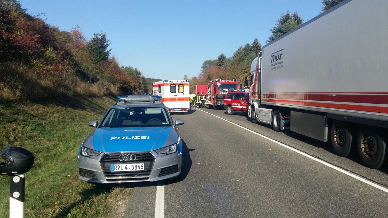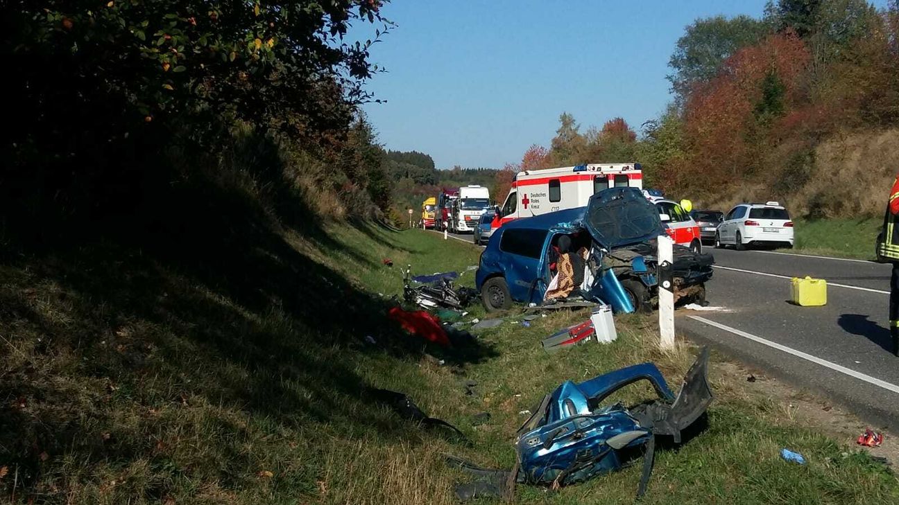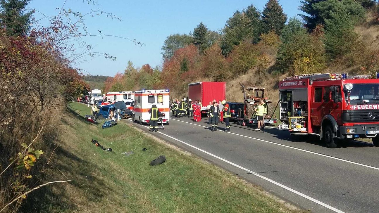 Schrecklicher Verkehrsunfall auf dem B 51-Zubringer zwischen Prüm und der A 60 Anschlussstelle: Wie die Feuerwehr bestätigt, sind dort kurz nach 15 Uhr am Montag zwei Menschen ums Leben gekommen. Nach derzeitigem Ermittlungsstand befuhr ein aus Richtung BAB 60/Prüm kommender Pkw die B 51 in Fahrtrichtung Köln, als er aus ungeklärter Ursache auf die Gegenfahrbahn geriet, mit einem entgegen kommenden Pkw seitlich kollidierte und anschließend frontal mit einem nachfolgenden Motorradfahrer kollidierte. Der Beifahrer des Pkw sowie der Motorradfahrer verstarben noch an der Unfallstelle, eine weitere Person wurde schwer-, zwei weitere Personen wurden leichtverletzt. Im Einsatz waren neben der Polizei Prüm, das DRK Prüm, Feuerwehr und Straßenmeisterei Prüm mit mehreren Einsatz-Teams. Die B 51 musste für mehrere Stunden voll gesperrt werden. Zur Klärung der Unfallursache wurde durch die Staatsanwaltschaft ein Gutachten in Auftrag gegeben. Fotos: Geidies