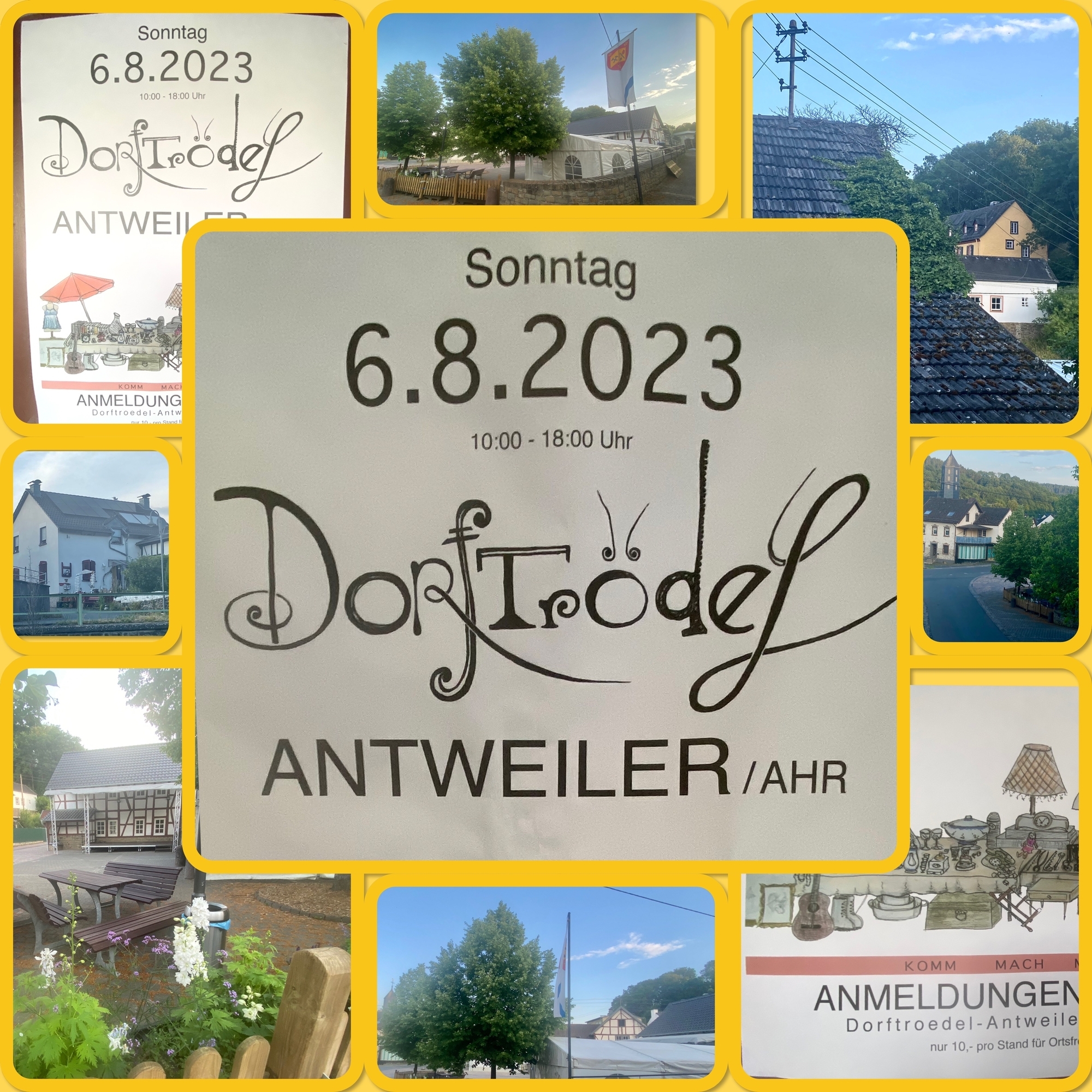 Im Zentrum von Antweiler und in den Straßen und Gassen tummeln sich, Stand heute, mehr als 25 einheimische Anbieter und bieten ihre Kostbarkeiten an. Aber auch ortsfremde finden einen Platz und können sich bis 15.7. anmelden unter Dorftroedel-Antweiler@gmx.de Wir wünschen allen einen schönen Tag am Sonntag, den 6.8.2023!!