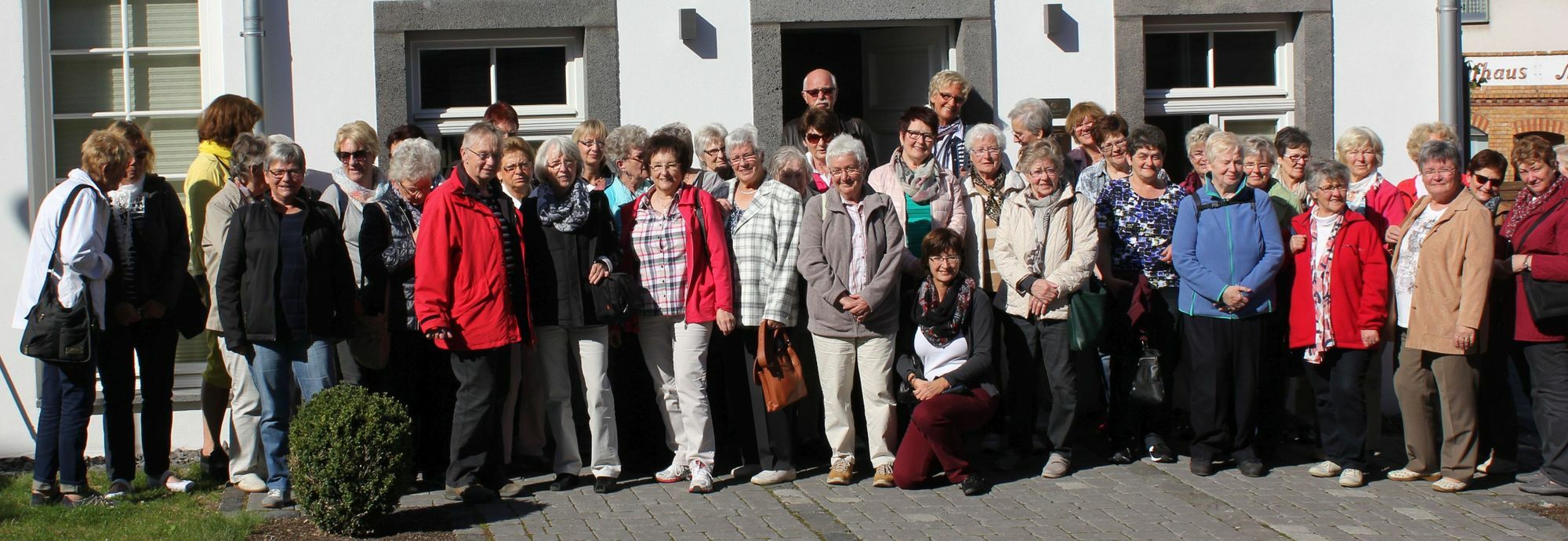 Niederzissen war das Ziel eines Ausflugs. Zunächst besuchten die Damen die ehemalige jüdische Synagoge. Richard Keuler, Vorsitzender des örtlichen Kultur- und Heimatvereins, begrüßte die Frauen. Er berichtete in einem anschaulichen Vortrag über das jüdische Leben in Niederzissen, insbesondere die Geschichte der Synagoge. Diese war seit 1841 der Mittelpunkt des jüdischen Gemeindelebens. 1938 wurde sie durch die Nazis geschändet und anschließend als Schmiede genutzt. Nach einer umfangreichen Renovierung dient sie heute als Begegnungsstätte und Ort für kulturelle Veranstaltungen. In einem eigenen Ausstellungsraum wird unter anderem das jüdische Leben im Jahresablauf dargestellt. Tief beeindruckt verließen die Besucherinnen die Synagoge. Bei einem anschließenden Spaziergang um das nahe gelegene Rodder Maar konnte man hier die Schönheit der Natur genießen. Der Tag fand einen würdigen Ausklang bei einem Abendessen mit schöner Aussicht auf die Burg Olbrück.
