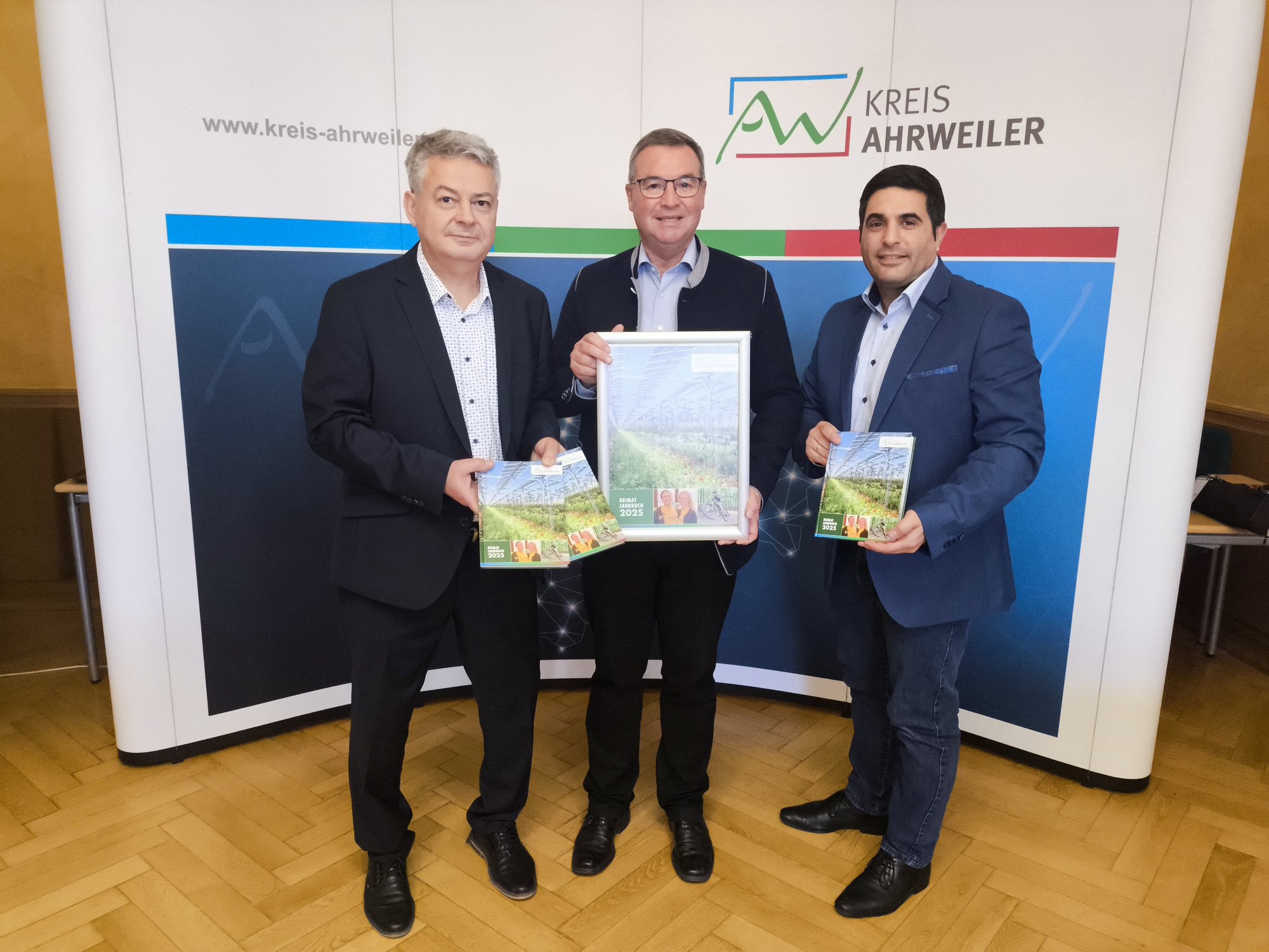 In Vertretung für Landrätin Cornelia Weigand präsentierte der Erste Kreisbeigeordnete Horst Gies (MdL) das Werk jetzt gemeinsam mit Redaktionsleiter Jürgen Kempenich, Referent für Kreisgeschichte in der Kreisverwaltung Ahrweiler. »Die einzelnen Berichte spiegeln erneut die große Bandbreite an Themen und damit die Vielfalt in den Dörfern und Städten unseres Kreises in Geschichte und Gegenwart«, sagte Gies. Die zeitliche Brücke zwischen Tradition und Moderne sei erneut »die große Stärke des Jahrbuchs«. Einen ausdrücklichen Dank richtete der Erste Kreisbeigeordnete an die 84 Autorinnen und Autoren, mit denen Redaktionsleiter Kempenich bei dieser Buchausgabe zusammengearbeitet hat.