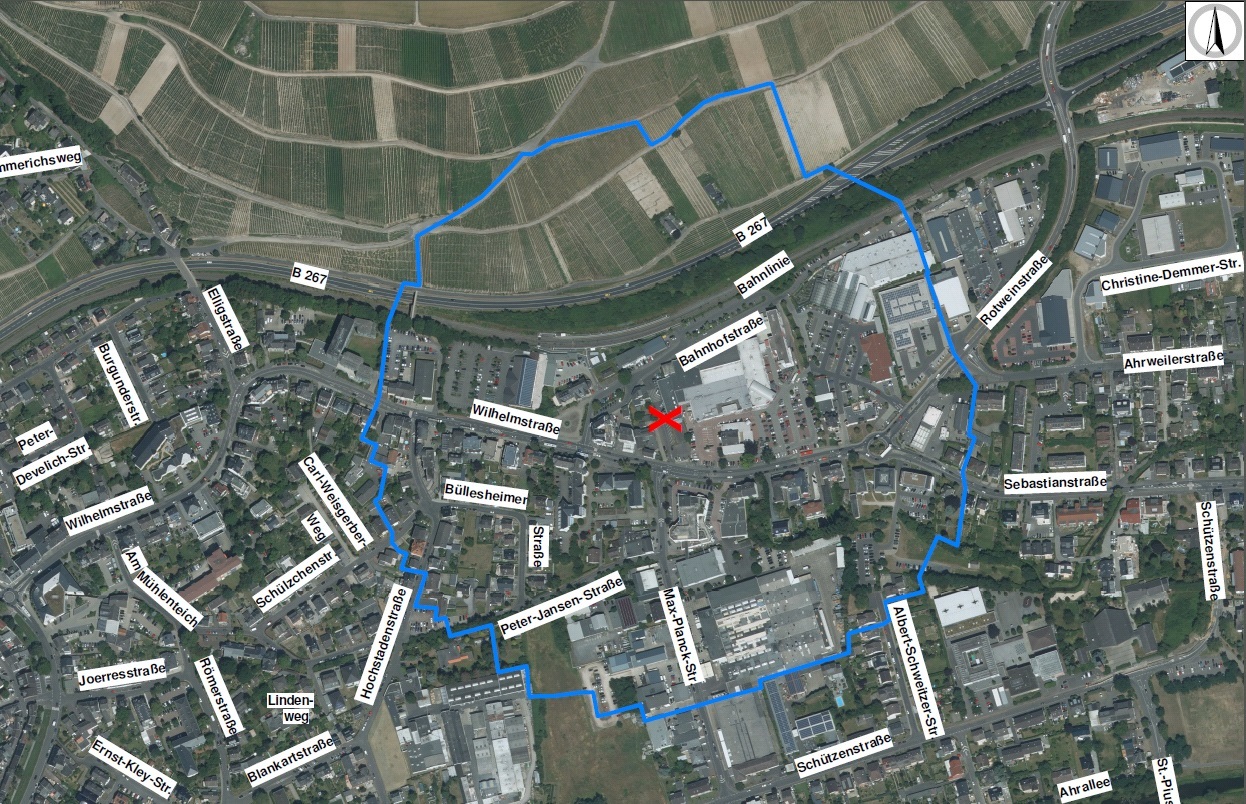 ist in einem 300-Meter-Radius rund um den Fundort der Bombe festgelegt;eine Lagekarte finden Sie auch im Stadtportal www.bad-neuenahr-ahrweiler.de