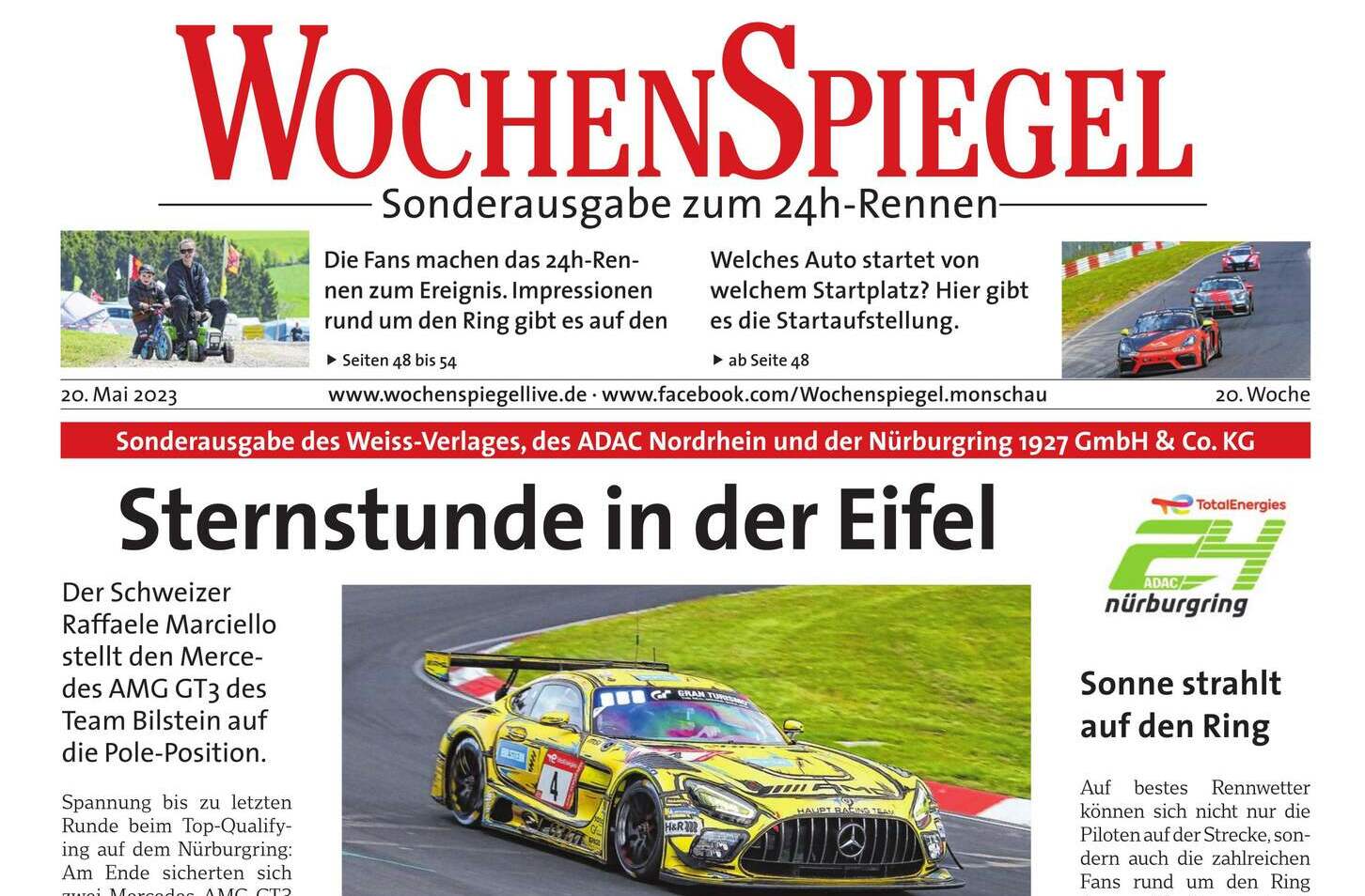 Zum 24h-Rennen auf dem Nürburgring gibt es auch zur 51. Auflage des Langstreckenklassikers wieder das WochenSpiegel-Sonderheft mit jeder Menge Informationen, Berichten, Team-Vorstellungen, aktuellen Fan-Impressionen und der aktuellen Startaufstellung für das 24h-Rennen. Das gedruckte Heft wird am Samstag, 20. Mai am Nürburgring verteilt. Und natürlich gibt es das Heft ab sofort brandaktuell als E-Paper für Smartphone, Tablet und Computer hier!