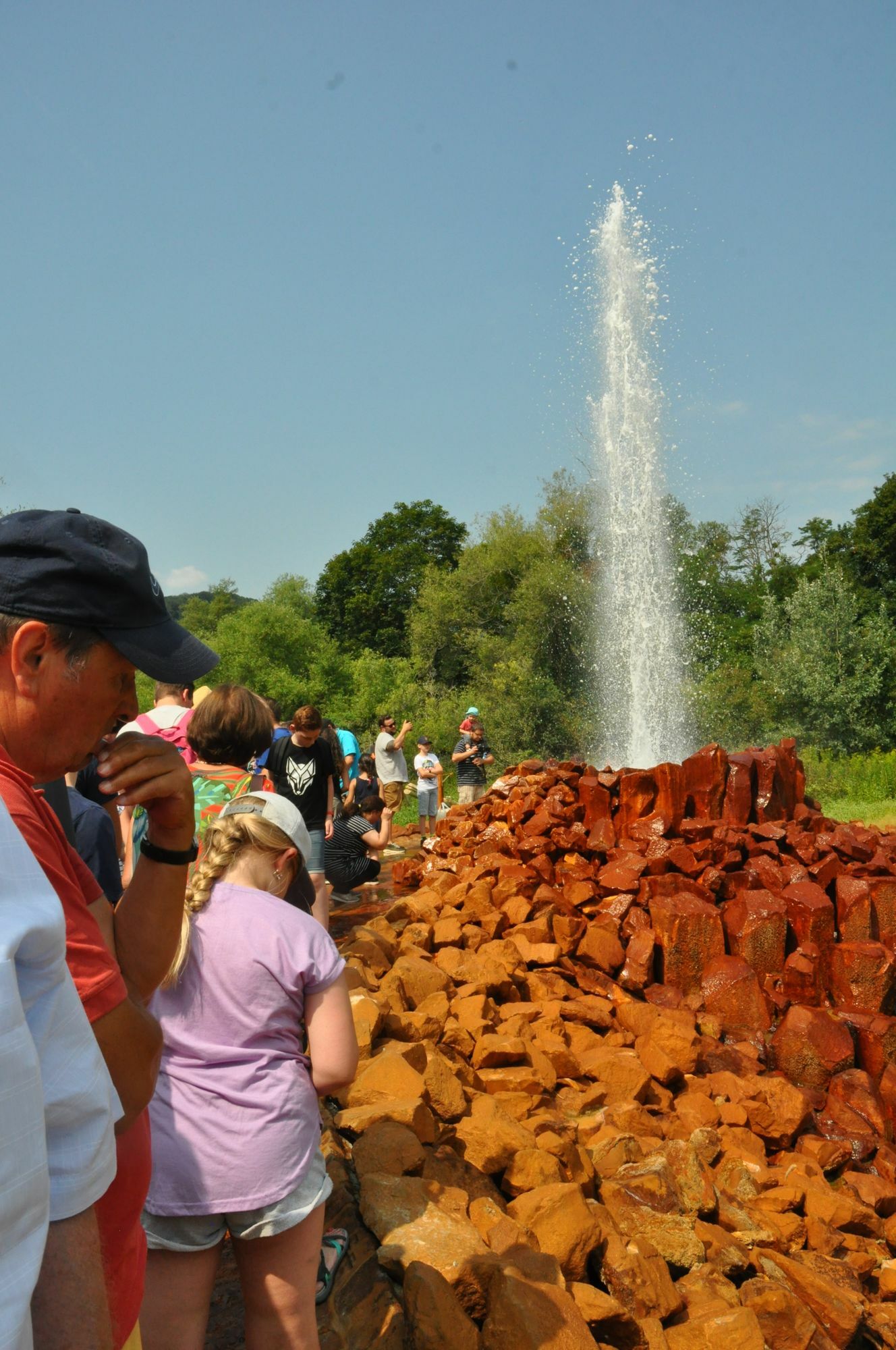 Ungefähr alle zwei Stunden - beinahe so verlässlich wie ein Uhrwerk - schießt die Wasserfontäne, die an windstillen Tagen bis zu 60 Meter hoch werden kann, auf der Halbinsel Namedyer Werth in den Himmel. Damit ist der Geysir der höchste seiner Art, was ihm 2008 sogar einen Eintrag ins Guinness Buch der Rekorde einbrachte. Aber nicht nur die Höhe des Wasserstrahls ist einzigartig. Die Anzahl der Kaltwasser-Geysire überhaupt ist überschaubar. Gerade einmal 20 "Ergüsse" - denn das bedeutet das Wort "Geysir" im Isländischen - sind weltweit bekannt. Auch deshalb ist ein Ausbruch ein Erlebnis für die jährlich zahlreichen Besucher, die sich zunächst vor einem unspektakulär aussehenden Steinhaufen versammeln. Doch dann beginnt es zu brodeln und nach einem Zischen zeigt der Geysir den Angereisten sein ganzes Ausmaß. Rund sechs bis acht Minuten schießt das Wasser mit einer Geschwindigkeit von bis zu 100 km/h aus der Erde. Erstaunte Ausrufe, aufgeregte Kinder, die sich von dem austretenden Wasser eine Abkühlung versprechen, und das Klicken zahlreicher Kameras. "Es ist wirklich faszinierend und so etwas Erstaunliches haben wir quasi direkt vor der Haustüre", sagt Saskia Auf der Mauer, die dem Geysir zusammen mit ihrer Familie einen Besuch abstattet. Die Kraft des Wassers Doch warum heißt es immer wieder "Wasser marsch"? Einfach ausgedrückt ist die Funktionsweise des Geysirs mit der einer übersprudelnden Mineralwasserflasche zu vergleichen: In der geschlossenen Flasche herrscht nach dem Schütteln ein erhöhter Druck. Durch diesen Überdruck ist viel Kohlenstoffdioxid (CO2) im Wasser gelöst. Wird die Flasche geöffnet, reduziert sich der Druck schlagartig, das CO2 steigt in Form kleiner Bläschen nach oben. Dabei reißt es das Wasser mit und sprudelt aus der Flasche. Anders als bei Heißwasser-Geysiren, bei denen Magma das Wasser erhitzt, ist der Ursprung des Andernacher Geysirs im Boden befindliches vulkanisches Gas oder genauer gesagt Kohlenstoffdioxid. Und natürlich schüttelt auch niemand den Geysir, damit er ausbricht. In den rund 350 Meter tiefen Bohrbrunnen strömt über Quarzadern kohlendioxidhaltiges Wasser bis er bis zum Rand gefüllt ist. Das Gewicht der Wassersäule erzeugt dabei am Grund einen Druck von etwa 35 bar. Da aber immer mehr Wasser nachströmt, erhöht sich auch der CO2-Gehalt im Brunnen, bis eine Sättigung erreicht ist. Die CO2-Bläschen steige nach oben. Dort können sie sich aufgrund der geringeren Druckverhältnisse ausdehnen, wodurch sie wiederum Wasser verdrängen. Der Geysir läuft über. Dadurch sinkt zunächst auch der Druck, doch immer mehr CO2 entgast aus dem Wasser. Ein Effekt, der immer rasanter wird, bis mehrere Meter lange Gasblasen das Wasser mit sich reißen. Erst wenn der Brunnen geleert ist, beginnt der Zyklus von erneut - etwa alle zwei Stunden. Von Menschenhand erschaffen? Doch so natürlich der Ausbruch des Geysirs auch ist, ganz von alleine ist das Brunnenrohr nicht entstanden. Erst durch gezielte Bohrungen auf der Halbinsel konnten Kohlenstoffdioxid und Wasser explosionsartig austreten. Bereits um 1900 entdeckte man, dass im Altarm des Rheins Gasbläschen aufstiegen. Um Mineralwasser zu gewinnen bohrte man nur wenige Jahre später mehr als 300 Meter in die Tiefe. Das Ergebnis: Neben der Gewinnung von Mineralwasser schoss auf der Namedyer Werth erstmals ein Geysir aus der Erde. Doch Beschädigungen des Brunnens führten dazu, dass der Geysir 1957 vorerst zum letzten Mal sprudelte. "Erst 2001 entschied man sich dazu, den Geysir zu reaktivieren. Da das Namedyer Werth allerdings 1985 zum Naturschutzgebiet erklärt worden war, mussten einige Hürden genommen werden", erklärt Geysir-Experte und Diplom-Geograph Ralf Schunk. 2005 war es dann aber soweit: Der Geysir sprudelt wieder. Unter Verschluss? "Viele Menschen denken, dass wir den Geysir regulieren würden, weil er so zuverlässig ausbricht. Doch an diesen Gerüchten ist nichts dran, es ist alles physikalisch zu erklären", So Schunk. Und auch auf die Frage, warum der Geysir weder nachts noch im Winter ausbricht, gibt es eine einfache Antwort. "Wir haben eine Verschluss-Mechanik, damit niemand etwas in den Geysir hineinschmeißen kann. Schließlich kommt alles, was einmal drin ist, auch wieder raus. Und das könnte gefährlich werden. Außerdem müssen wir darauf achten, dass der Geysir - zum Beispiel bei Hochwasser - und somit auch das Grundwasser nicht verunreinigt wird." Tipps rund um den Besuch: Der frühe Vogel zu sein lohnt sich: Der Knall beim ersten Ausbruch des Tages ist der lauteste. Wasserfeste Schuhe nicht vergessen! Das Wasser bleibt natürlich nicht in der Luft hängen. Sobald es wieder hinabfällt, läuft es auch den Weg hinab, von dem aus sich die Besucher das Naturschauspiel ansehen. www.geysir-andernach.de