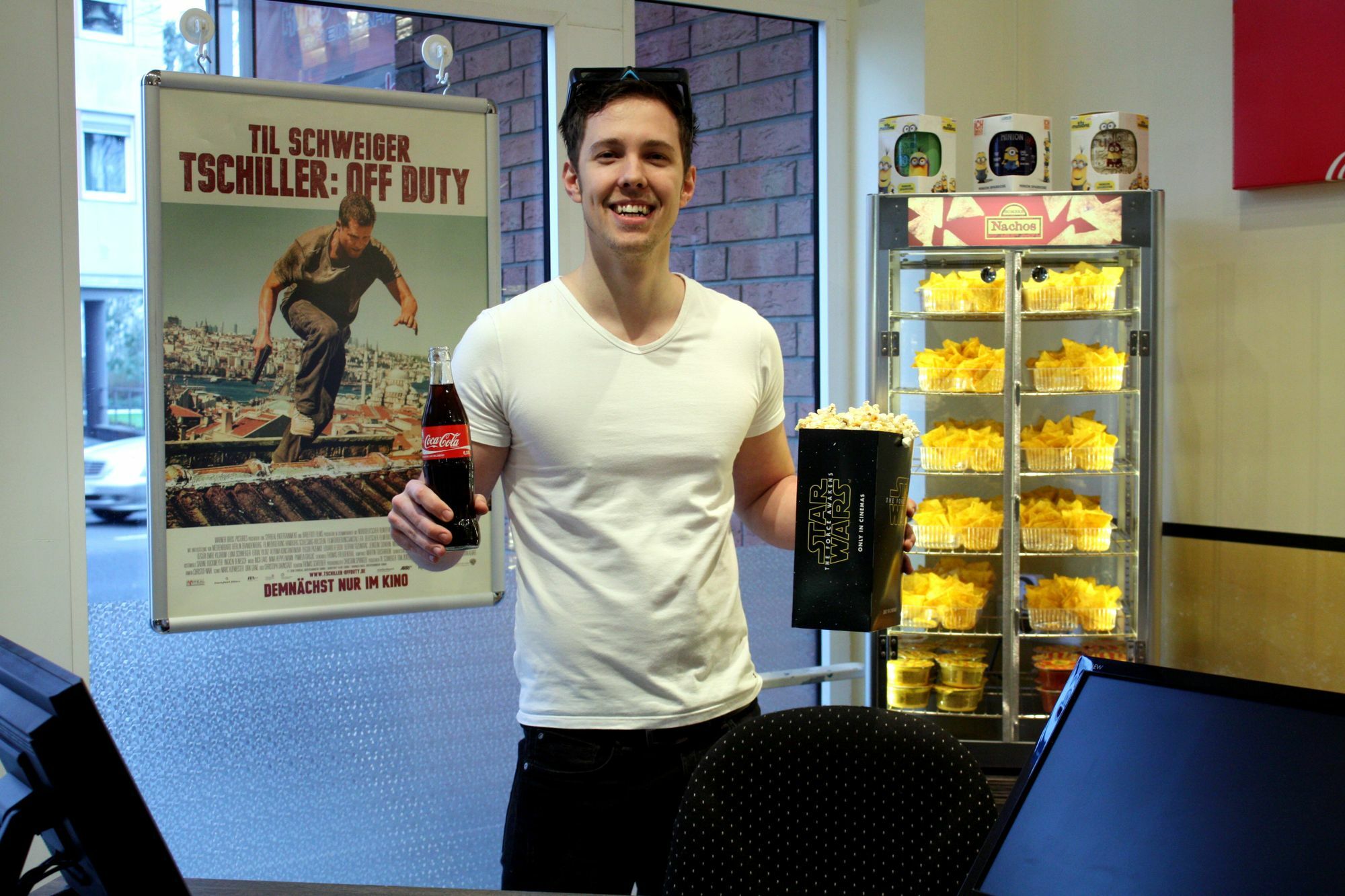 Mit seinen zehn Mitarbeitern im Service, als Kartenabreißer, an der Kasse oder im Putzteam sitzt der junge Mann selbst in der Technik. Die romantische Vorstellung des Technikers neben der großen Filmrolle ist natürlich veraltet. Aufgrund der Digitalisierung ist der Saal nur durch einen Mausklick vom Filmstart entfernt. Softwares, die per »drag and drop« zu bedienen sind, erlauben es, auch ohne Schulung in der Kinotechnik zu arbeiten.