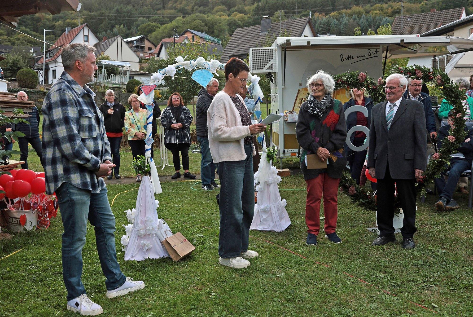 In Vertretung von Bürgermeister Dominik Gieler der Verbandsgemeinde Altenahr überbrachte der Beigeordnete Rainer Metzen die Grüße und Glückwünsche der gesamten Verbandgemeinde. „In einer Zeit, in der vieles im Wandel ist, ist eure langjährige Verbindung ein Zeichen für Beständigkeit und Vertrauen. Ihr habt nicht nur euer Leben miteinander verbunden, sondern auch eine Gemeinschaft bereichert, in der Liebe und Zusammenhalt großgeschrieben werden", so Rainer Metzen in seinem Grußwort.