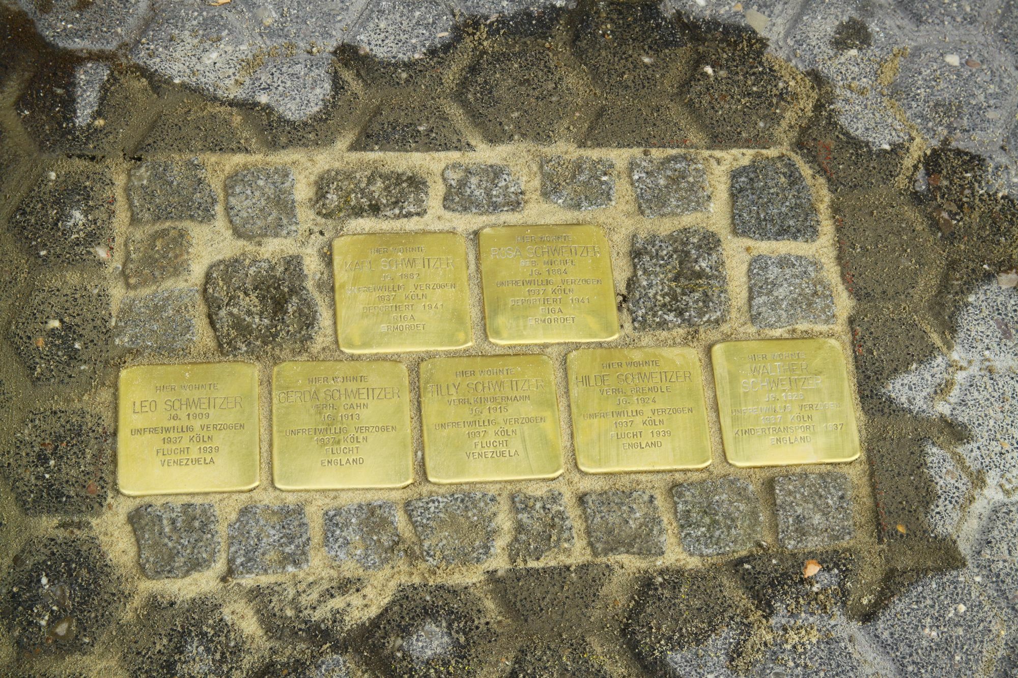 "Bisher erinnerte nichts an diesem Ort an die Familie", sagte Steinhoff. Nun weisen die sieben Stolpersteine auf den letzten Wohnwort der Schweitzers. Verlegt wurden sie vom Kölner Bildhauer Gunter Demnig, der europaweit mit den Stolpersteinen an die Opfer des Nationalsozialismus erinnert.In hunderten deutschen Städten und Gemeinden sind Stolpersteine zu finden, dazu in rund 20 Ländern Europas. Bei den Steinen handelt sich hierbei um 10 mal 10 Zentimeter große Betonsteine, auf deren Oberfläche sich eine individuell beschriftete Messingplatte befindet.