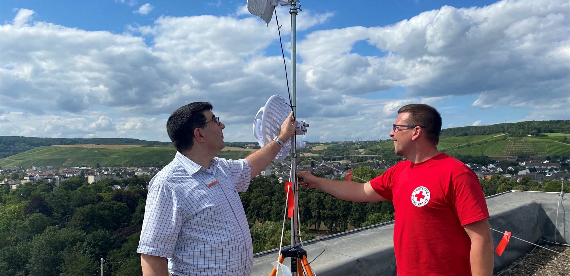 Das Deutsche Rote Kreuz (DRK) ist den meisten Mitbürgern durch seine Ausbildung in Erster Hilfe für Führerscheinbewerber, durch den Rettungsdienst oder durch die Blutspende bekannt. Dass das DRK auch Fähigkeiten zur Schaffung provisorischer Infrastrukturen nach Katastrophen hat, haben die Bürger im Schadensgebiet Ahrtal nach der Flutkatastrophe mitbekommen. Auf die Idee, dass das DRK temporäre Internetverbindungen herstellen kann, wären aber auch im Ahrtal sicher die wenigsten Bewohner gekommen. Einsatzkräfte des Bevölkerungsschutzes sind bei der Bewältigung ihrer Aufgaben auf modernste Kommunikationsmöglichkeiten angewiesen. Dazu gehört im 21. Jahrhundert auch das Internet. Seit der ersten Flutwoche versorgt das DRK die Bürger im Ahrtal mit einer über 100 Kilometer langen Richtfunkstrecke mit Internetknotenpunkten, auf die man per WLAN kostenfrei zugreifen kann.