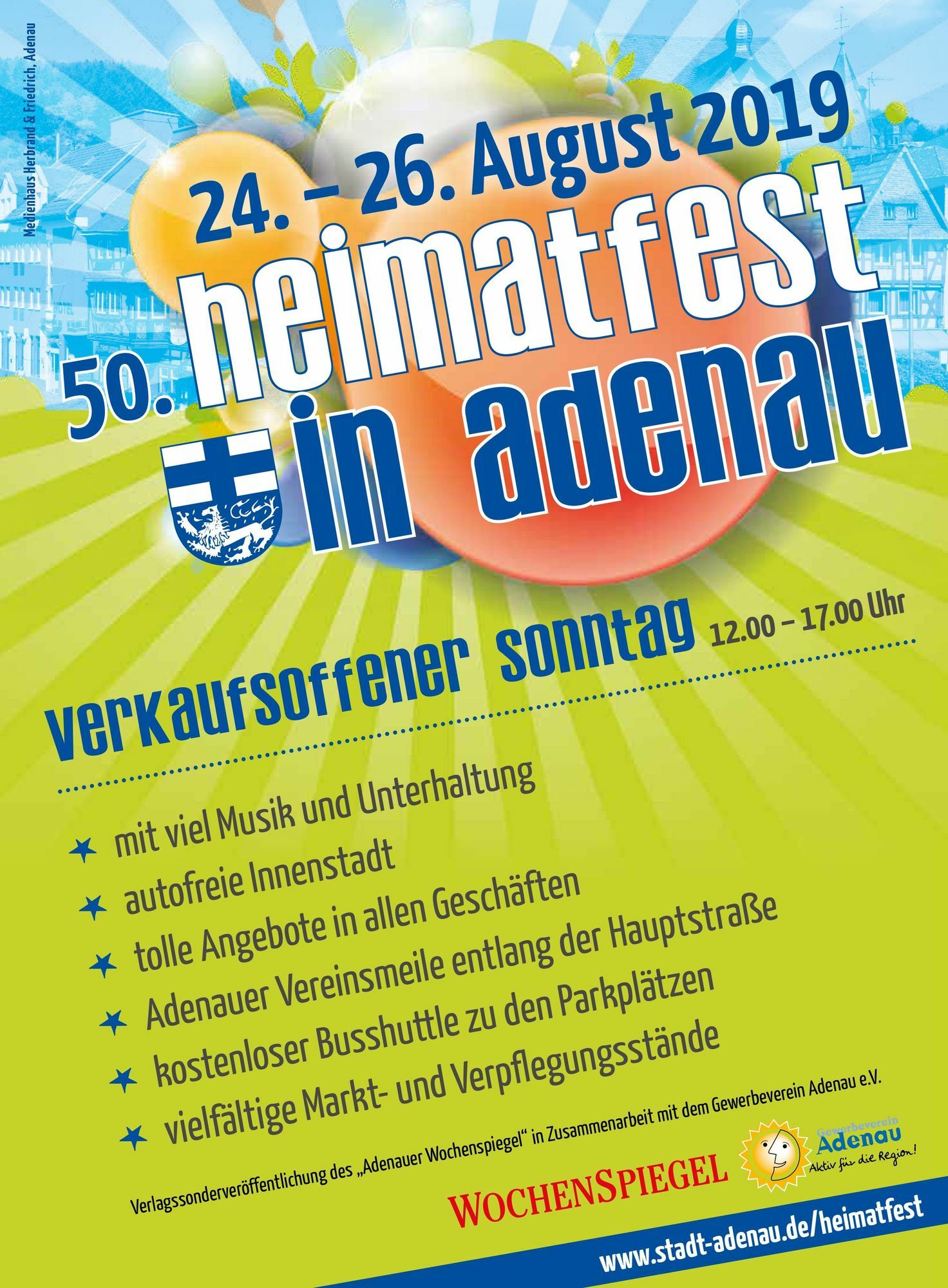 Der Adenauer Einzelhandel präsentiert sich zum 50. Heimatfest mit einem verkaufsoffener Sonntag. Der Kirmesrummel und ein attraktives Bühnenprogramm werden wieder weitere Publikumsmagnete sein.