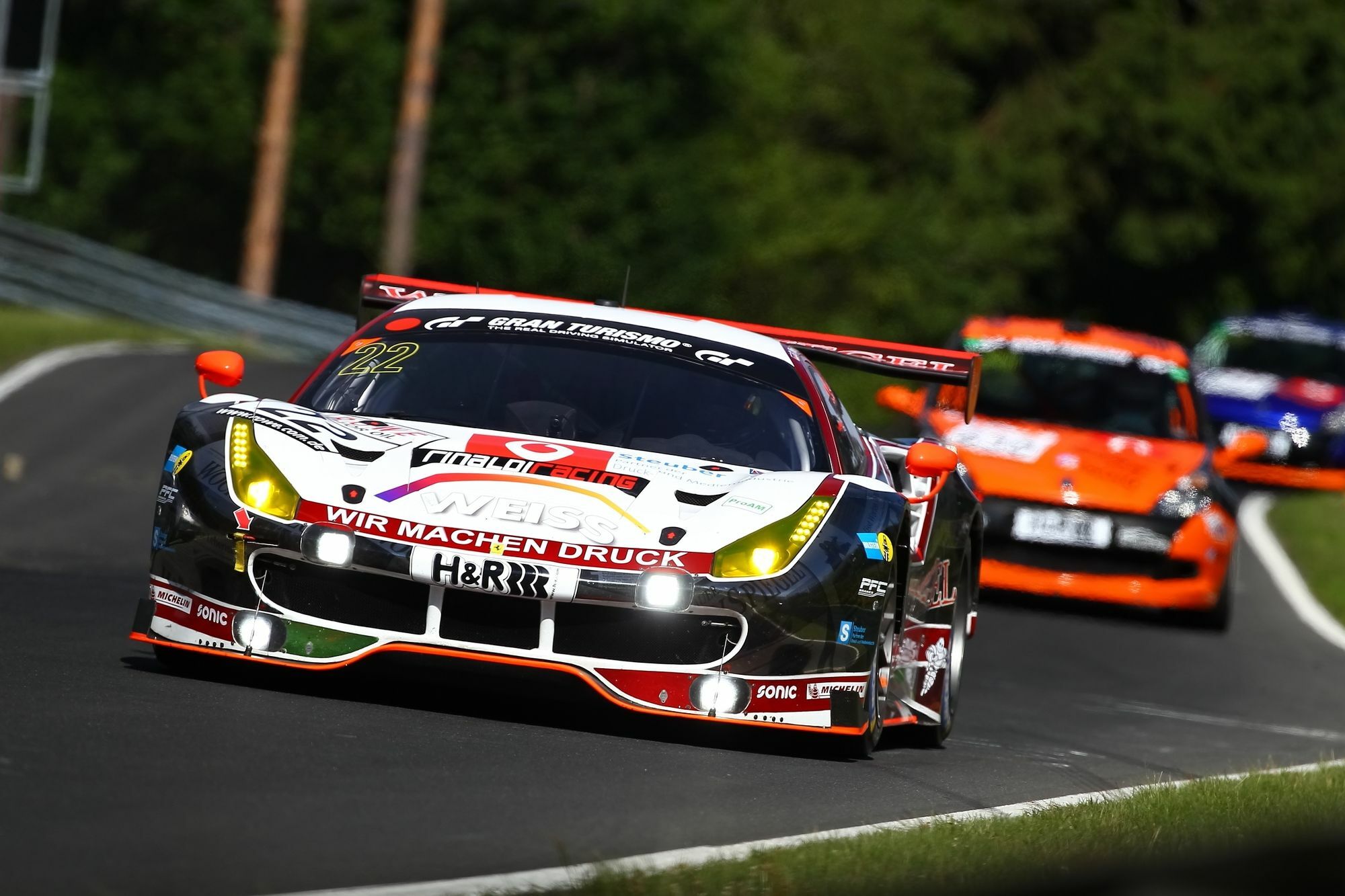 Mit einer fulminanten Leistung im Training sicherten sich die beiden Wochenspiegel-Ferrari 488 GT 3 die erste Startreihe. Das „Junior Auto“ mit der Start Nr. 11 sicherte sich mit einer Zeit von 7:58.060 die Pole Position und auch das Schwesterauto knackte mit einer Zeit von 7:58,518 auf der zweiten Position die 8 Minuten Marke in der Grünen Hölle,