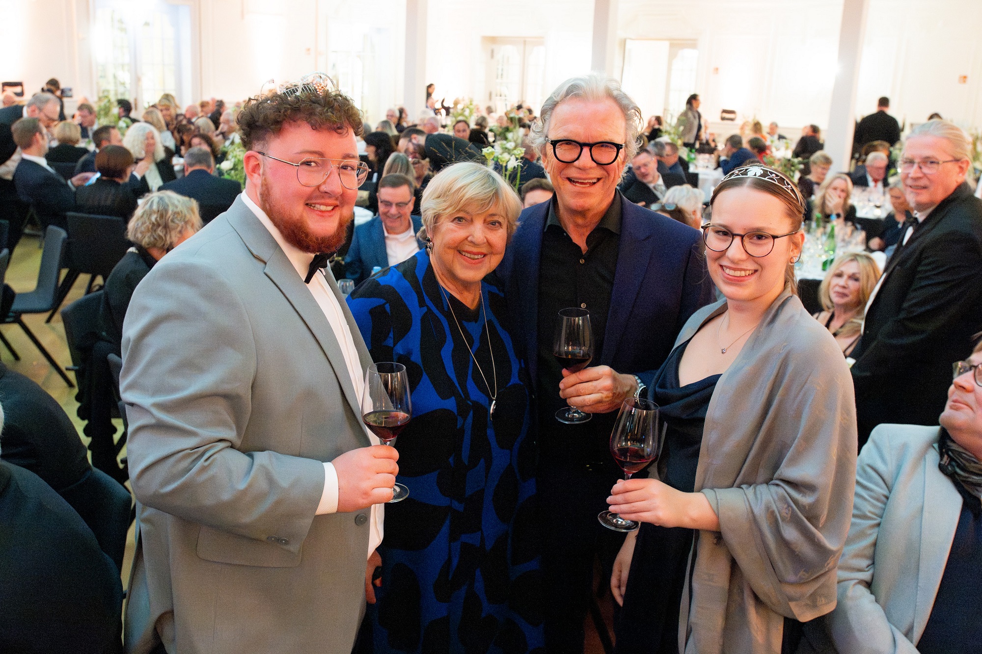 Begleitet wurde die feierliche Gala von einem 4-Gang-Gourmet-Menü aus dem Hause Steigenberger, das perfekt auf die Auswahl der Ahrweine abgestimmt war. Dazu spielte das Saal-Orchester Markus Quodt stimmungsvolle Musik. Die imposante Blumendekoration hatte Mehmet Yilmaz vom Floral Design Store in den Saal gezaubert.