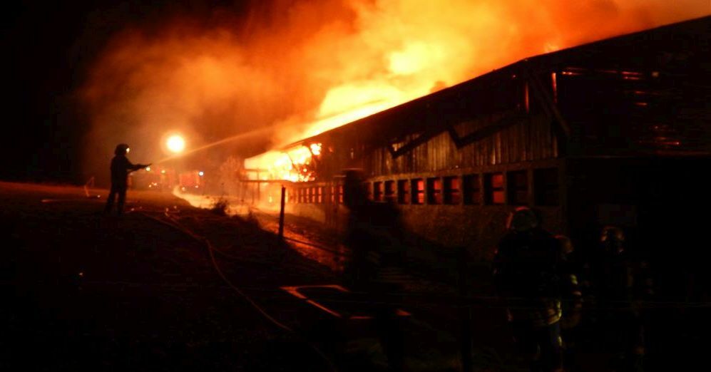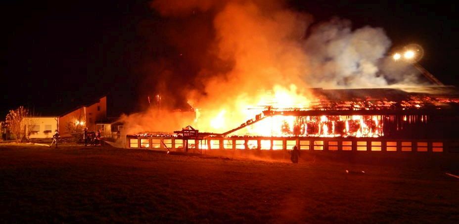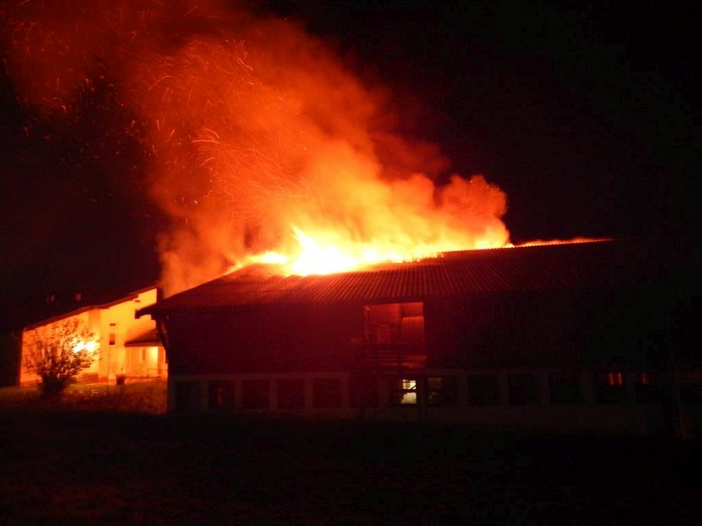 Gegen 18.10 Uhr war das Feuer auf dem Reiterhof in Adenau gemeldet worden. Ein Großaufgebot der Feuerwehren rückte an. Schon gegen 17.15 Uhr war in der unmittelbaren Nähe dieses Reiterhofes der Brand zweier Strohballen gemeldet worden. Letztere konnten relativ schnell abgelöscht werden. Als die Einsatzkräfte gegen 18.15 Uhr sukzessive vor Ort eintrafen, stand bereits ein an die Reithalle angrenzendes, 20 mal 70 Meter großes Stroh- und Heulager in Flammen. Die Flammen drohten auf andere Gebäude, darunter die Stallungen und die Reithalle, überzugreifen.