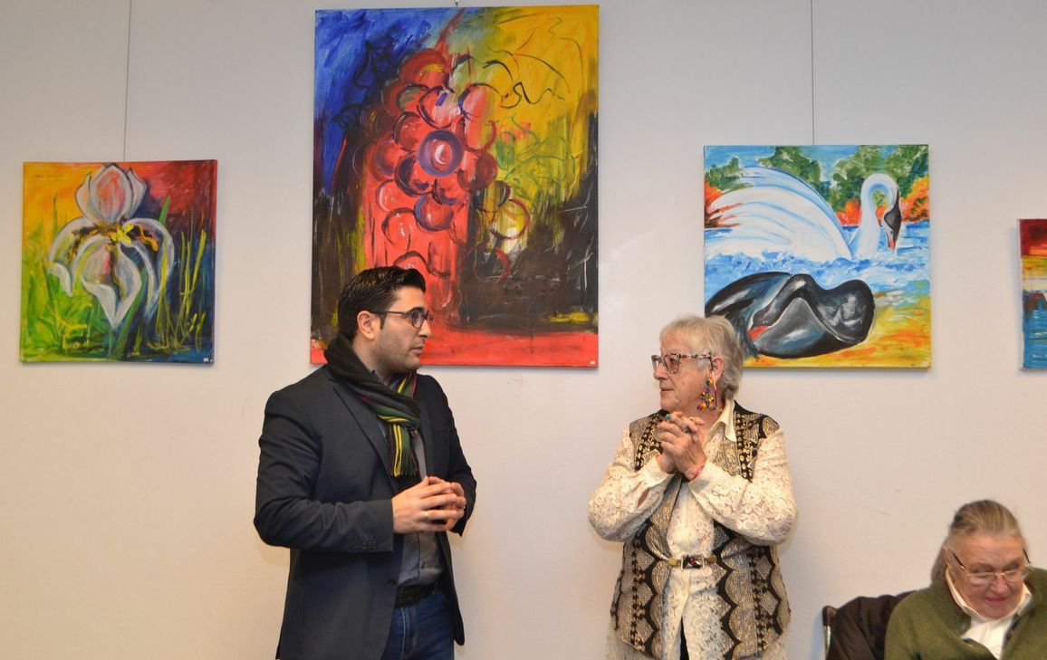 Die Bilder von Dorle Schweiss sprühen nur so von kräftigen Farben. »Es gibt viele Farben, also benutzen wir sie auch«, erklärt die Künstlerin. »Meine Bilder sind farbig, ohne bunt zu sein«, sagt Dorle Schweiss. Nicht bunt? Diese Aussage muss jeden Betrachter stutzig machen, wo ihm doch gerade die Farben von den Bildern nur so entgegen leuchten.Verschmitzt erklärt Dorle Schweiss: »Bunt ist unruhig Meine Bilder sind farbig.« Auch wenn ihre Werke nicht immer durchgehende und gleichmäßige Pinselstriche zeigen, unruhig sind sie in der Tat nicht. Aber abwechslungsreich. Manche Bilder offenbaren lebendige Flächen, auf denen deutlich mehrere Farbschichten übereinanderliegen. Andere Bilder sind ganz ruhig und gleichmäßig. Bei der Vernissage im WochenSpiegel-Verlagsbüro am heutigen Freitag konnten sich die Besucher einen Eindruck vom Schaffen der Künstlerin machen. Serkan Basar, Leiter des Verlagsbüros, bedankte sich bei Dorle Schweiss dafür, dass sie ihre Bilder beim WochenSpiegel ausstellt.