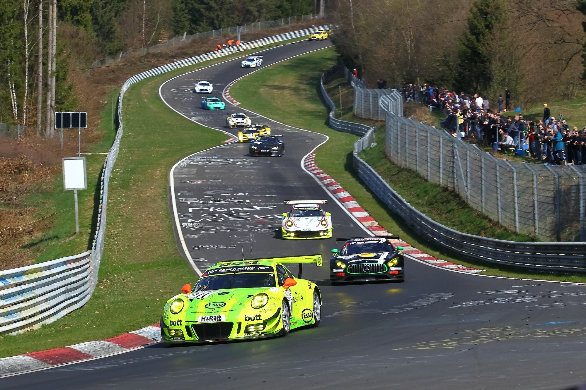 Auch beim zweiten VLN-Lauf der Saison hat Manthey-Racing den Sieg davongetragen. Frédéric Makowiecki und Richard Lietz verloren eingangs der letzten Runde die Führung an Connor de Phillippi im Land-Audi, der aber auf der Döttinger Höhe kurz vor Schluss in langsamer Fahrt den Sieg verlor und nicht über den fünften Rang hinaus kam. Das Podium wurde komplettiert von HARIBO Racing mit Uwe Alzen, Lance David Arnold und Maximilian Götz im Mercedes AMG GT3 und dem Audi R8 LMS des Audi Sport Teams WRT mit DTM Pilot Nico Müller, Marcel Fässler und Robin Frijns. Wie schon beim Auftakt sah der Wochenspiegel Ferrari auch bei Rennen Nummer zwei durch einen Unfall das Ziel nicht.