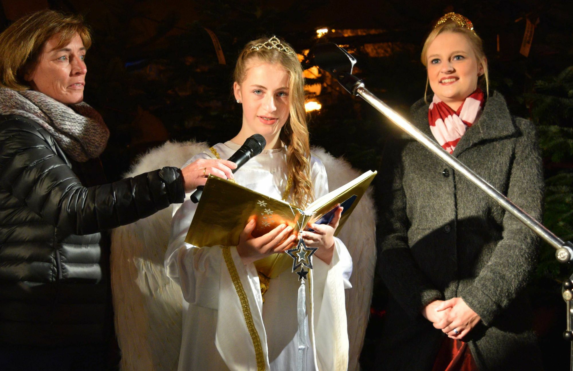 Gemeinsam haben das Ahrweiler Engelchen, Burgundia Irena Schmitz und Martina Schuch, Vorsitzende der Werbegemeinschaft Ahrweiler am heutigen Freitag offiziell den Weihnachtsmarkt in Ahrweiler eröffnet. Für festliche Musik sorgten die Rhein-Ahr-Spatzen. Der Weihnachtsmarkt in Ahrweiler ist an allen Adventswochenenden geöffnet. Freitags und samstags kann man sich von 11 bis 21 Uhr von der vorweihnachtlichen Stimmung verzaubern lassen und sonntags von 11 bis 20 Uhr. Gleich zweimal kommt der Nikolaus vorbei und erfreut die jungen Besucher, jeweils am Samstag, 10. und 17. Dezember um 16 Uhr (Weinbrunnen auf dem Marktplatz). Ausrichter des Weihnachtsmarktes ist die Werbegemeinschaft Ahrweiler. Infos: www.werbegemeinschaft-ahrweiler.de