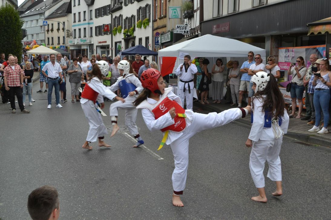 Es war ein Heimatfest, das eines Jubiläums würdig war. Zum 50. Mal haben die Adenauer ihr Heimatfest gefeiert. Und diejenigen, die diesmal besonderes im Mittelpunkt standen, haben gezeigt, warum man in Adenau so stolz auf sie ist: die Vereine. Über 20 Vereine haben sich auf der Vereinsmeile präsentiert, die anlässlich des Jubiläums organisiert wurde. Zahlreiche Gruppen waren regelrecht aktiv. Mitglieder der Taekwondo-Abteilung des TuWi Adenau traten und schlugen Bretter durch, das Fanfarencorps Adenau sorgte für musikalische Unterhaltung, der Arbeitskreis Evangelische und Katholische Frauen sorgte für Waffeln, die Feuerwehr und die Pfadfinder der DPSG sorgten für Getränke – um nur eine Auswahl zu nennen.