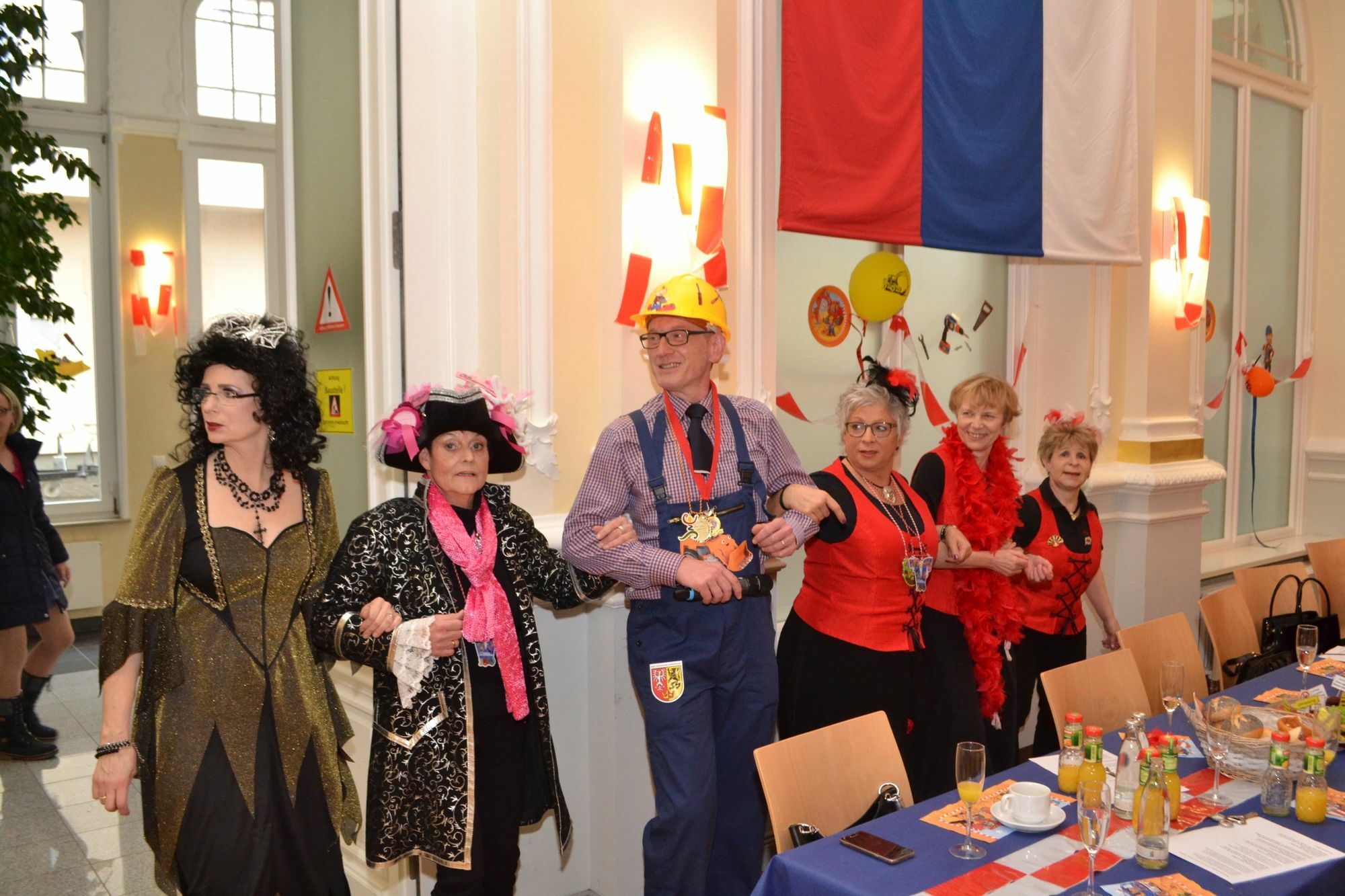 Am Weiberdonnerstag haben die Frauen die Macht im Kreis Ahrweiler übernommen. In der Grafschaft und in Remagen ergatterten die Möhnen sogar die Rathausschlüssel. Achim Juchem, Bürgermeister der Gemeinde Grafschaft, hatte die Ortsvorsteher antanzen lassen und ihnen T-Shirts mit dem Wort »Rathausschützer« auf dem Rücken verpasst. »Die wissen gar nicht, was hinten drauf steht«, unkte die Gelsdorfer Obermöhn Kerstin Christmann, die später den Rathausschlüssel in den Händen hielt. Der Remagener Bürgermeister Björn Ingendahl nahm den Weiberdonnerstag wohl etwas zu entspannt. Als gechillte Hippies verkleidet machten es der »Florian Silbereisen von Remagen« und seine Mitarbeiter den Möhnen wohl etwas zu einfach. Die hatten den Rathausschlüssel schnell unter einem Blumenkübel gefunden und den Rathausbalkon gestürmt. Widerstand fanden sie nicht vor. Die zahlreichen Bauarbeiten in Bad Neuenahr-Ahrweiler nahmen Bürgermeister Guido Orthen und sein »Bob der Baumeister«-Team auf die Schippe. Die Möhnen aus dem Stadtgebiet stellten mit schlagfertigen Vorträgen ein tolles Programm zusammen. Auch der Sinziger Bürgermeister Andreas Geron und seine Mitarbeiter empfingen die Sinziger Stadtmaure Möhne sowie zahlreiche Verein der Stadt im Rathaus. Bis Geron den Schlüssel rausrücken muss, kann er verschnaufen. Den gibt es in Sinzig erst am Sonntag. Ist in Adenau etwa die Lösung gefunden worden? Die Mitarbeiterinnen des Rathauses der Verbandsgemeinde Adenau übernehmen den Dienst für das Krankenhaus – zumindest an Weiberfastnacht. Die jecken Wiever aus dem Rathaus nahmen die Situation rund um die geschlossene Chirurgie aufs Korn, sangen passende Lieder und verabreichten alkoholhaltige »Infusionen«.