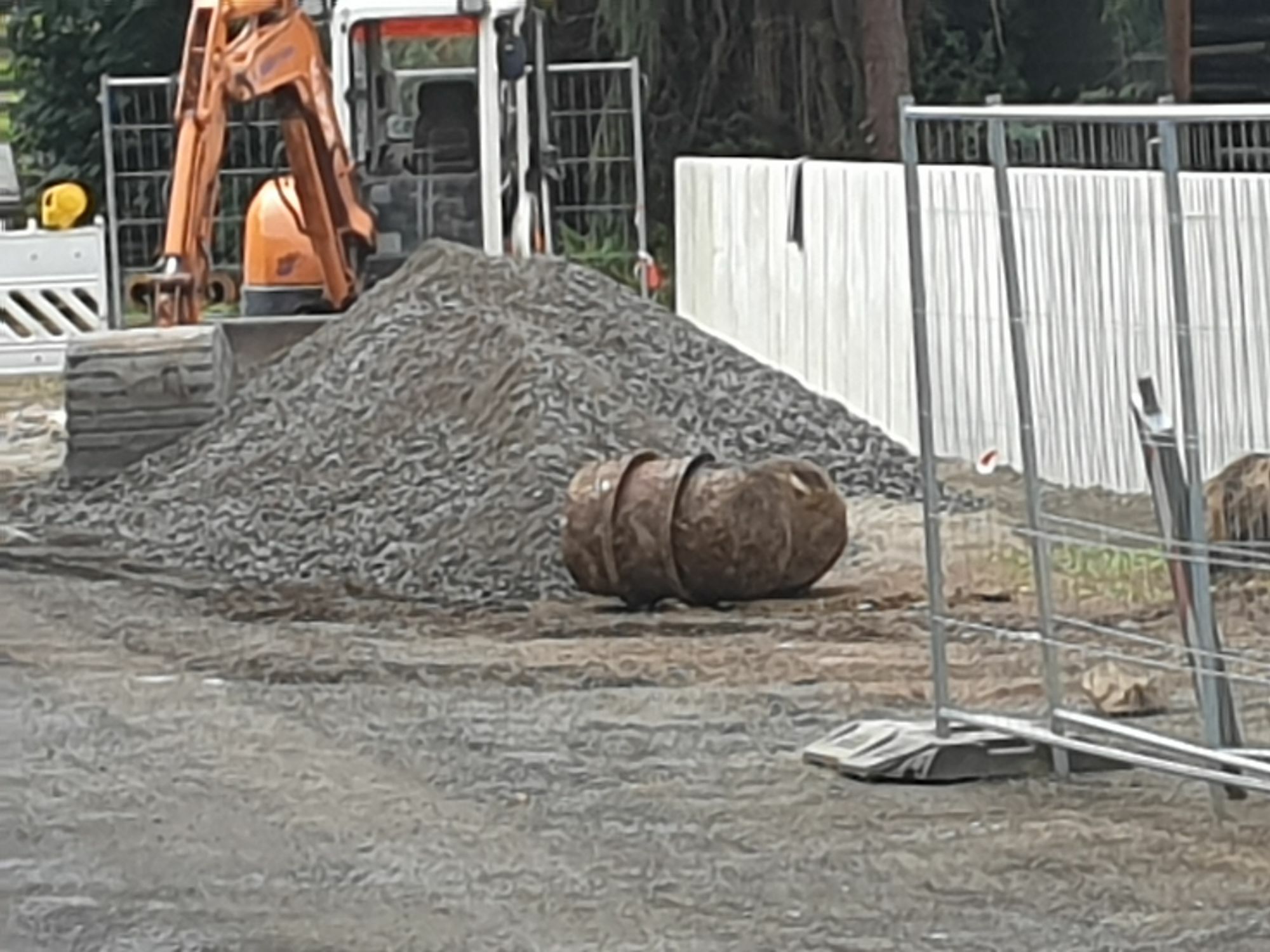 Heute Morgen, 15. August, fanden Bauarbeiter auf einem Anwesen am Dahlienweg bei Baggerarbeiten einen größeren Behälter, der zunächst nicht verifiziert werden konnte. Wegen der eventuellen Gefahrenlage (zunächst bestand die Vermutung, dass es sich um einen Blindgänger handeln könnte), wurde der Gefahrstoffzug der Feuerwehr und die umliegenden Löschzüge alarmiert. Zur genaueren Abklärung wurde der Kampfmittelräumdienst hinzugezogen. Der Gefahrenbereich wurde weiträumig abgesperrt, sodass es im Bereich des Krankenhauses zu Verkehrsbehinderungen kam. Der Linienverkehr wurde abgeleitet. Die Feuerwehr war mit circa 40 Kameraden und elf Fahrzeugen im Einsatz. Die Sperrungen bestehen weiter, die Art des Gegenstandes ist nicht geklärt. Es wird nachberichtet. Quelle: Polizeiinspektion Bad Neuenahr-Ahrweiler