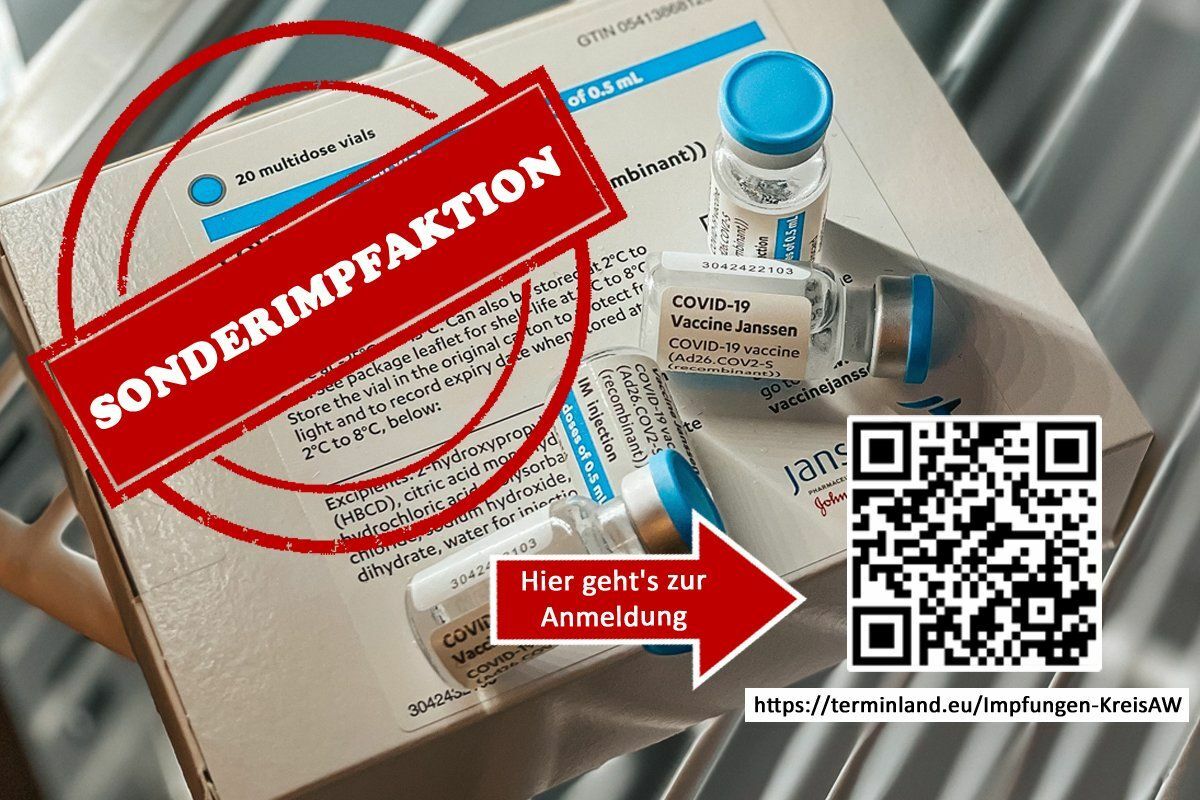 Am Samstag, 3. Juli 2021, findet in der Zeit von 6 bis 24 Uhr in beiden Impfstraßen des Landesimpfzentrums in Grafschaft-Gelsdorf eine Sonderimpfaktion des Medizinischen Versorgungszentrums (MVZ) Ahrtalklinik (Sinzig-Bad Bodendorf) mit Unterstützung der Praxen Dr. Michael Berbig & Dr. Ulf Konrads, Dr. Roman Bauer, Dr. Christian Maschmeyer, Stefan Assmann, Ulrich Bauer und der Grafschafter Gemeinschaftspraxis mit dem Vakzin von Johnson & Johnson statt. Für diese offene Sonderimpfaktion können sich alle im Kreis Ahrweiler gemeldeten und impfbereiten Bürgerinnen und Bürger ab dem 18. Lebensjahr registrieren. Die Auswahl eines Impftermins ist in Abhängigkeit des begrenzt zur Verfügung stehenden Impfstoffes bis spätestens zum 30. Juni 2021, 12 Uhr, ausschließlich über den unten angegebenen Link möglich. Nach erfolgreicher Registrierung wird eine automatische Terminbestätigung mit weiteren Hinweisen per E-Mail versendet (auch Spam-Ordner prüfen). Impfungen ohne einen vorher vergebenen Impftermin sind nicht möglich. Die Impfung erfolgt nach vorheriger ärztlicher Aufklärung und bei individueller Risikoakzeptanz durch die impfwillige Person. Weitere Informationen zum Impfstoff können auf der Website des Robert-Koch-Instituts (RKI) abgerufen werden. Ein entsprechender Aufklärungsbogen wird im Vorfeld als E-Mail-Anlage übermittelt, ist sorgfältig zu lesen, handschriftlich zu unterzeichnen und während des Impftermins unaufgefordert vorzulegen. Zwingende Voraussetzung für eine Impfung ist die Vorlage des Krankenversichertenkärtchens sowie des Personalausweises bei der Einlasskontrolle vor Ort. Auch Privatpatienten müssen einen Nachweis über den Versichertenstatus erbringen. Eine Impfung ist nur dann möglich, wenn alle vorgenannten Unterlagen vollständig vorgelegt werden können.Sofern vorhanden, wird die Impfung im persönlichen gelben Impfpass dokumentiert. Liegt dieser nicht vor, erhalten Geimpfte ein Einlegeblatt. Um einen reibungslosen Ablauf zu gewährleisten, werden alle erfolgreich angemeldeten Personen gebeten, frühestens 15 Minuten vor dem eigentlichen Impftermin zu erscheinen. Parkplätze stehen in ausreichender Anzahl zur Verfügung. Für die 18-stündige Sonderaktion stehen insgesamt 2222 Impfdosen zur Verfügung. Das Vakzin muss nur einmal verabreicht werden, sodass Impfbereite, die diesen Impfstoff erhalten, bereits 14 Tage nach der einmaligen Impfstoffgabe als vollständig geimpft gelten. Eine Anmeldung ist unter folgendem Link möglich: https://terminland.eu/Impfungen-KreisAW. Hinweis: Der Link kann nicht mehr aufgerufen werden, sobald alle Termine vergeben wurden.