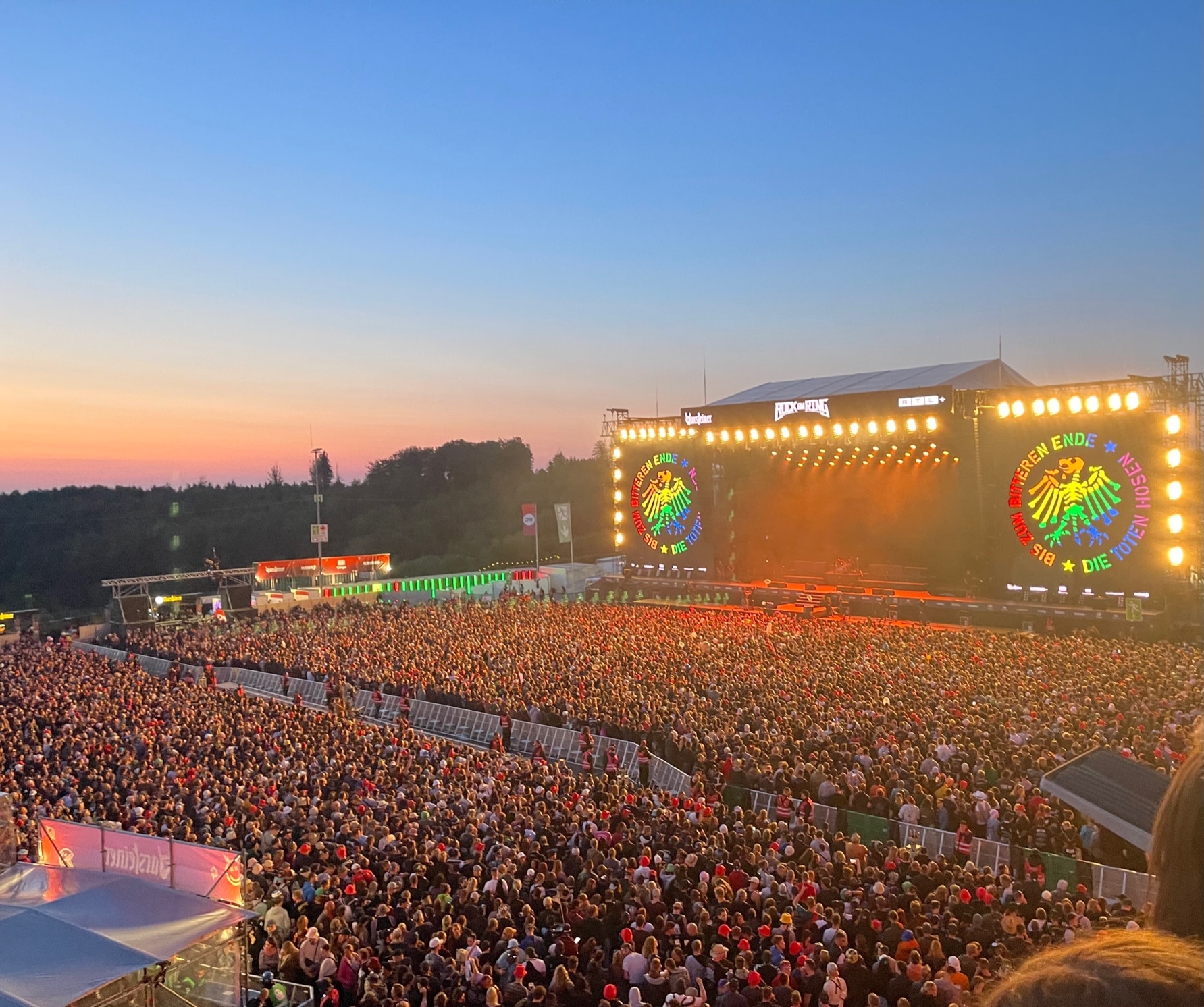 »Die Toten Hosen« traten zum Abschluss des Festivals am Sonntag auf. Die Fans waren begeistert von »Campino« und seiner Band. Foto: Zender Traumwetter, 70 Bands und rund 70.000 Besucher: Nach drei Tagen und Nächten endete in der Nacht zum Montag »Rock am Ring« 2023. Nürburg. Das Mega-Festival »Rock am Ring« lief in diesem Jahr reibungslos ab. Veranstalter, Polizei und Rettungskräfte sind zufrieden. Auch der eine Faktor, den niemand beeinflussen kann, spielte 2023 mit, wie schon lange nicht mehr: Seit 30 Jahren gab es an einem Rock am Ring-Wochenende nicht mehr so gutes Wetter wie dieses Jahr. Ein Umstand, der den Gesamteindruck eines perfekten Wochenendes an der in die Natur der Eifel gebetteten Rennstrecke am Nürburgring perfekt untermalte. »Wir freuen uns, dass wir die Pole Position von Rock am Ring und Rock im Park im zentral-europäischen Festivalmarkt mit Hilfe unserer Fans auch dieses Jahr wieder untermauert haben«, sagt CEO und Festivalveranstalter Matt Schwarz, und Dr. Frithjof Pils, CEO eventimpresents, ergänzt: »Von außen ist kaum zu sehen, welche planerische und logistische Herkulesaufgabe hinter der Organisation von Festivals wie Rock am Ring und Rock im Park steht.« Und nach Rock am Ring ist vor Rock am Ring. Der Termin fürs kommende Jahr steht schon fest: 7. Juni bis zum 9. Juni 2024. www.rock-am-ring.com