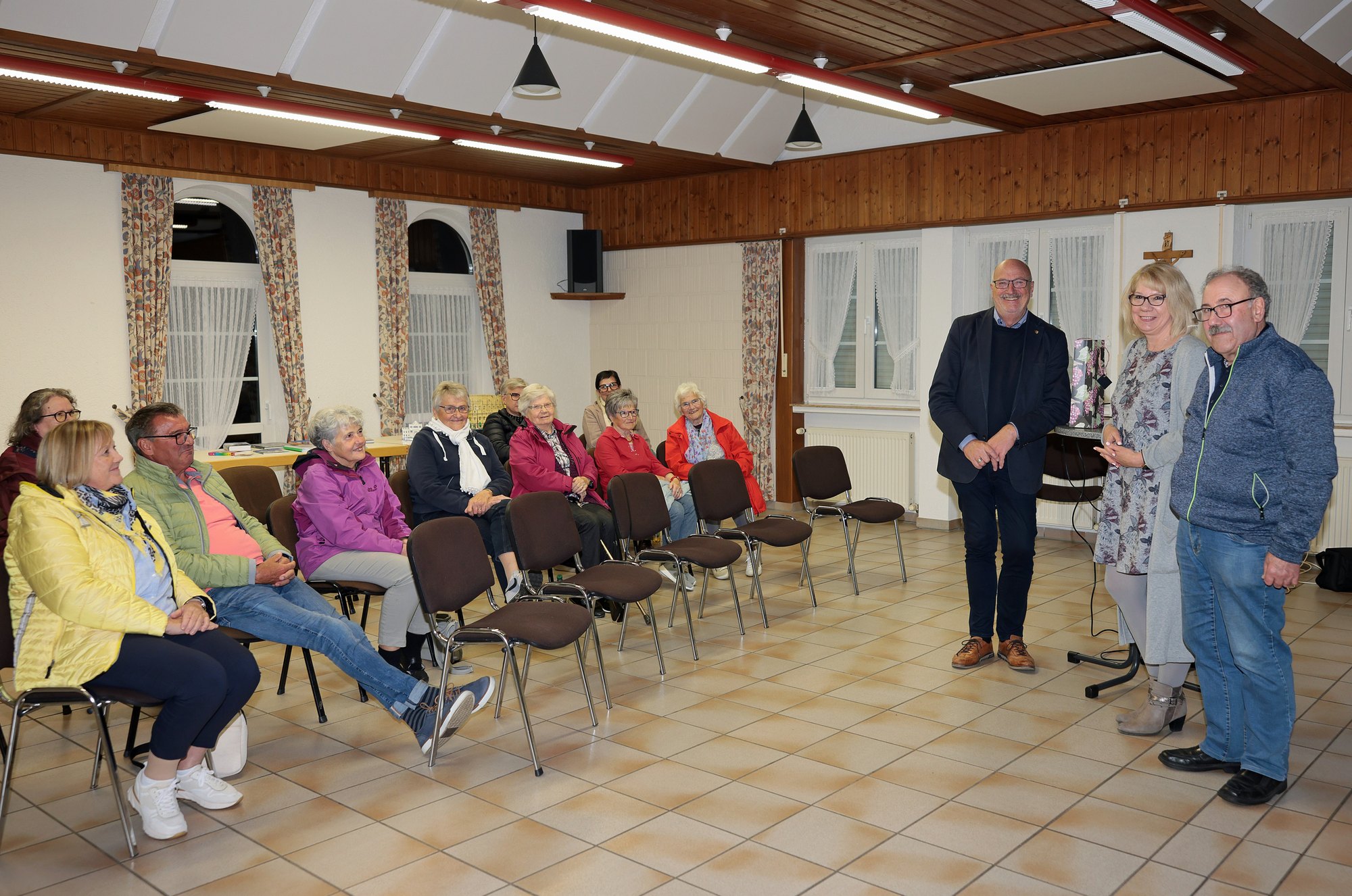 Der stellv. Vorsitzende der KAB Alfons Ginster und Rita Kaiser vom Vorstand bedankten sich zum Schluss bei Jürgen Schwarzmann für die wunderbare Bilderreise mit einem Weinpräsent von der Ahr.