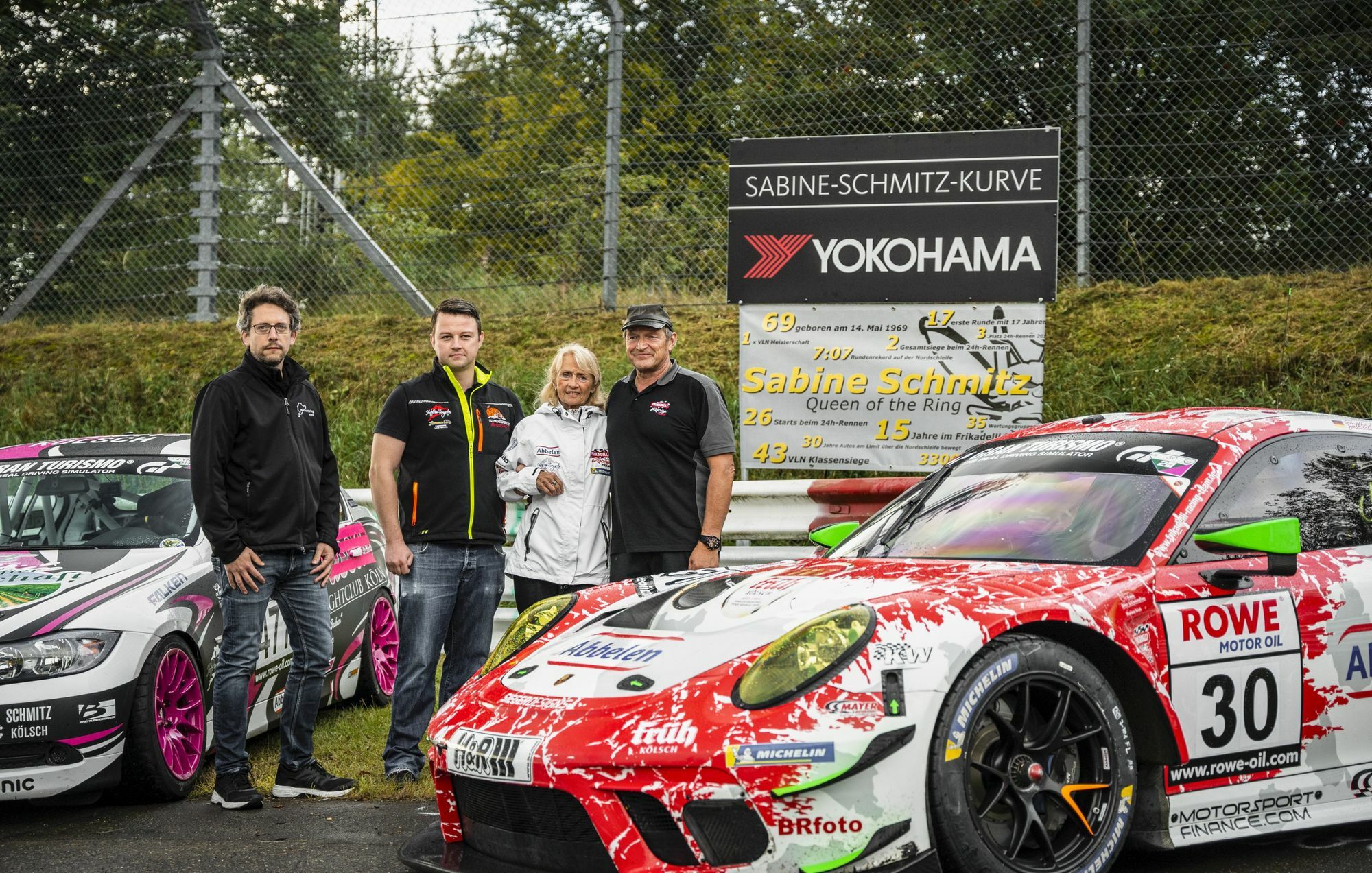 Die Enthüllung des neuen Streckenabschnitt-Schildes fand im Beisein ihrer Familie statt. Die gebürtige Adenauerin war zeitlebens fest mit der Rennstrecke verbunden und galt als ihre bekannteste Botschafterin. Sie ist die erste Rennfahrerin überhaupt, die in der über 90-jährigen Geschichte der Rennstrecke eine eigene Kurve auf dem Nürburgring bekommt. Mit einer eigenen Kurve ordnet der Nürburgring Sabine Schmitz in die Reihe ihrer prägendsten Persönlichkeiten ein. Neben ihr tragen nur drei weitere Streckenabschnitte die Namen von Rennfahrern: Formel-1-Rekordweltmeister Michael Schumacher, Rudolf Caracciola, der legendäre Sieger des Eröffnungsrennens 1927, sowie Stefan Bellof. Letzterer hatte vor rund 40 Jahren beim Training zum 1000-Kilometer-Rennen den ewigen Rundenrekord bei einer Rennveranstaltung auf der Nordschleife aufgestellt. Die Sabine-Schmitz-Kurve liegt am Ortsrand von Nürburg – nur wenige Meter entfernt von hier wuchs die Rennfahrerin auf. Zudem ist die Stelle für Zuschauer schnell und problemlos zugänglich. Beides entscheidende Kriterien bei der Wahl der Kurve, denn Sabine Schmitz hatte eine einmalige Bindung zu den Fans und zu ihrer Heimat. Die Kurve wird in Zukunft deshalb auch ein Ort des gemeinsamen Erinnerns sein. Ihr gesamtes Leben verbrachte die Rennfahrerin an und auf der 20,832 Kilometer langen Nordschleife. Mehr als 30 Jahre lang bewegte sie hier Fahrzeuge am Limit – 33.000 Runden waren es insgesamt. Mit ihren Fahrkünsten und ihrer offenherzigen Art erlangte sie weltweit Bekanntheit, trat unter anderem im britischen Automagazin "Top Gear" auf. Als erste und bislang einzige Frau gewann sie 1996 und 1997 das 24h-Rennen auf dem Nürburgring. Sabine Schmitz verstarb im März dieses Jahres im Alter von nur 51 Jahren. Lange bleibt es nicht ruhig in der neuen Sabine-Schmitz-Kurve. Foto: Nürburgring www.nuerburgring.de