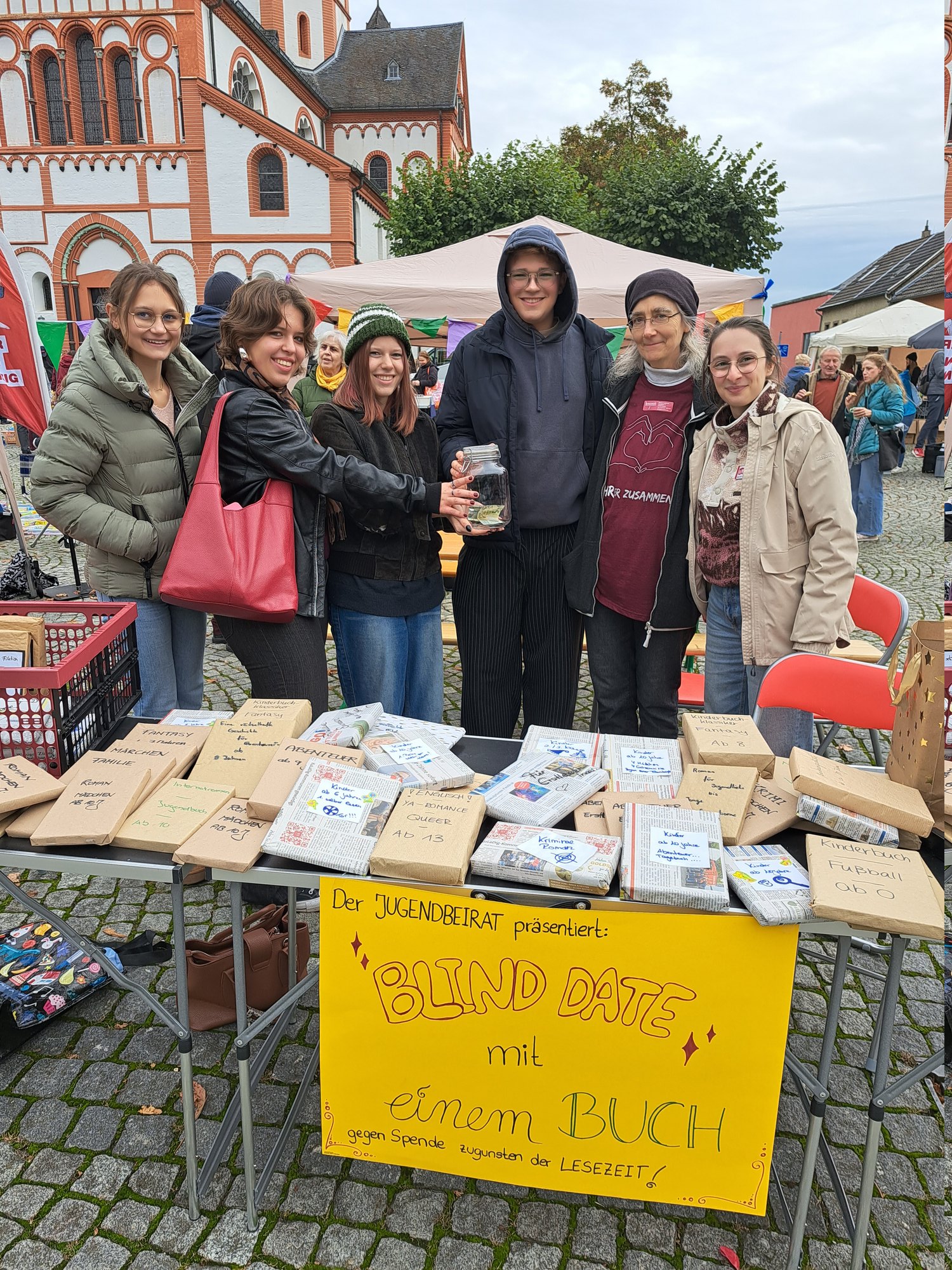 Der Bücherherbst am 3.Oktober wurde mit der Aktion „Blind Date mit einem Buch“ bereichert. Gegen eine Spende konnte ein verpacktes Buch erworben werden, das nur mit Genre und Zielgruppe gekennzeichnet war. Den Erlös von gut 80 Euro spendeten die Jugendlichen der Lesezeit.