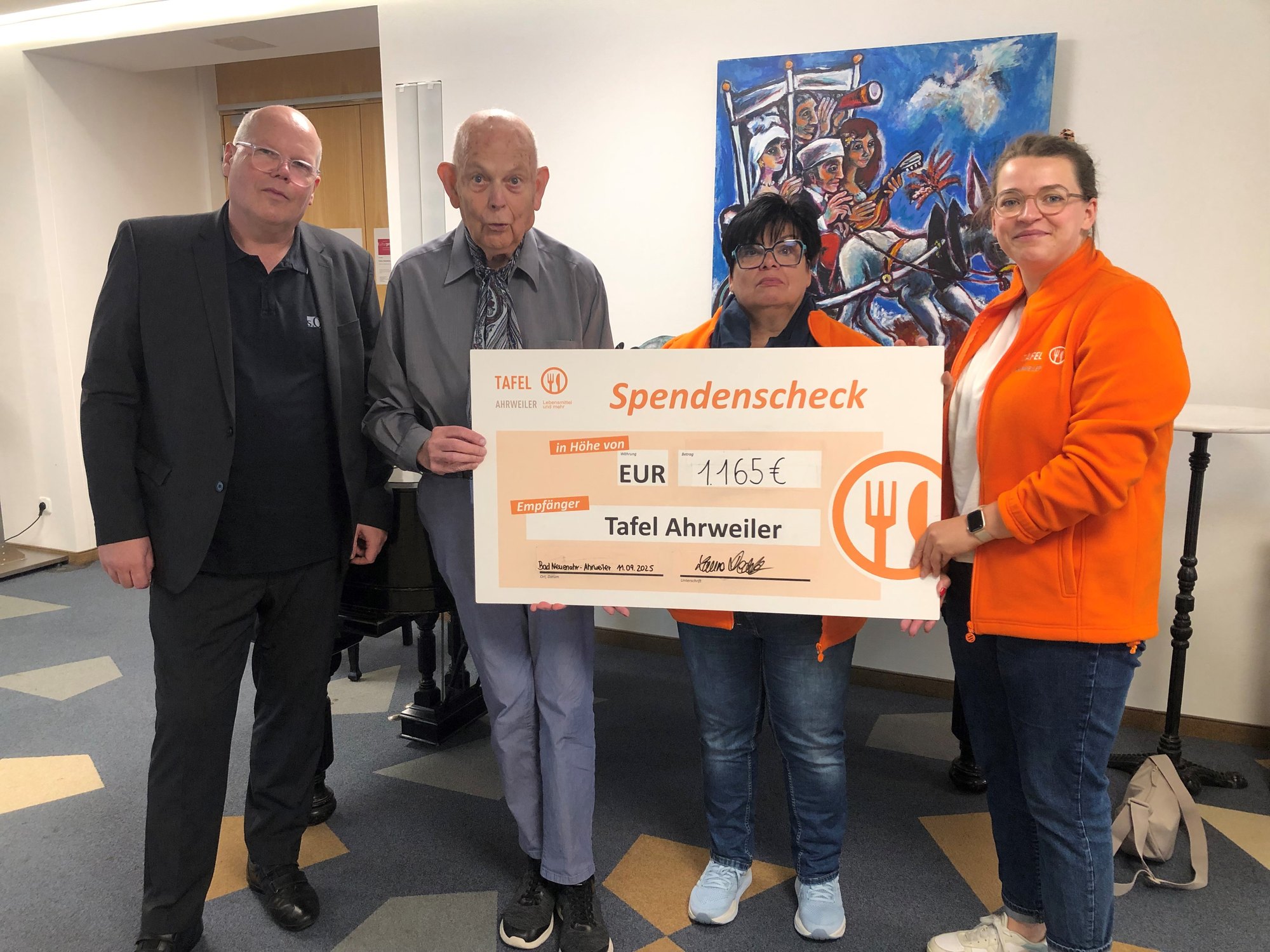 Helmut Frielingsdorf freut sich sehr über den stattlichen Spendenbetrag und dankt allen, die dazu beigetragen haben. Die Tafel Ahrweiler bedankt sich bei allen Beteiligten für ihre Großzügigkeit und bei Helmut Frielingsdorf für sein soziales Engagement.