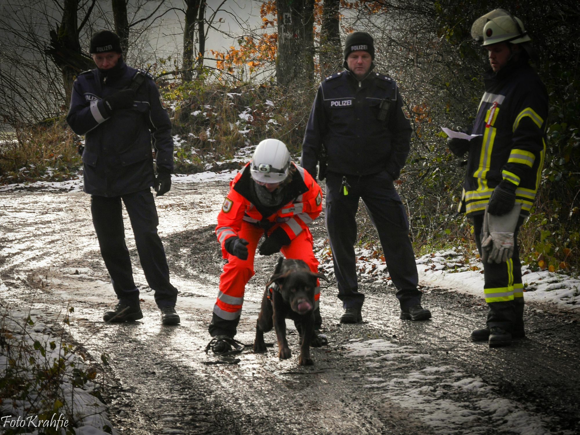 Das Szenario: Nach der Explosion eines Gasbrenners während einer Feier im Wald hatten mehrere Personen verletzt, betrunken oder verwirrt die Unfallstelle verlassen und wurden vermisst. Die BRH Rettungshundestaffel Rhein-Mosel war mit sechs Suchteams, bestehend aus jeweils einem Hundeführer und einem einsatzfähigen Flächensuchhund, sowie einem Mantrailer, einem Gruppenführer und einem Zugführer für das Auffinden der verschwundenen Personen zuständig. Dabei wurden die Rettungshundeteams tatkräftig durch jeweils einen Feuerwehrmann unterstützt. Gefundene Personen wurden von der Feuerwehr Nohn aus dem Wald transportiert. Dank der Helfer, die die vermissten und verletzten Personen perfekt mimten, hatten die beteiligten Hilfsorganisationen alle Hände voll zu tun, um offene Knochenbrüche, Unterkühlungen oder Verbrennungen zu versorgen und die panischen „Opfer“ zu beruhigen.