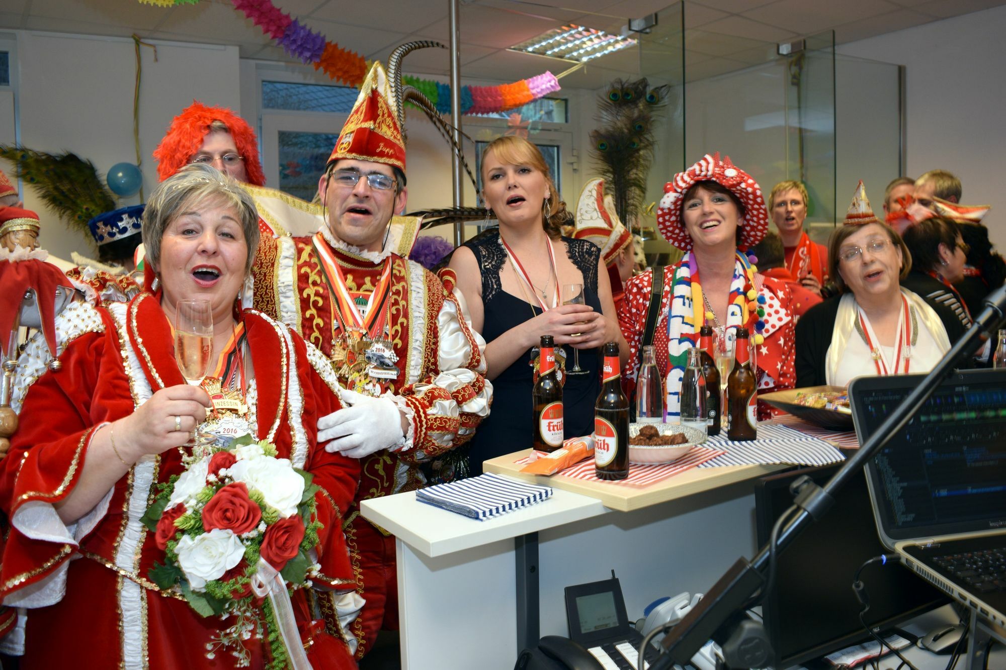 Bei einem lecker Kölsch, süßen Mutzen und herzhaften Frikadellchen verbrachten die Tollitäten aus dem Kreis Ahrweiler auch in diesem Jahr wieder ein paar gemütliche Stunden in der Ahrweiler Wochenspiegel-Redaktion am Marktplatz. Der ungezwungene Gedankenaustausch mit den "Kollegen" aus der Region hat für viele Vereine aus dem Kreis längst einen festen Platz im jährlichen Terminkalender. Besonders begehrt war daher auch in diesem Jahr erneut der streng limitierte Wochenspiegel-Orden, den die Zeitungsleute an ihre närrischen Gäste verteilten. Musikalisch wurde der Prinzenempfang auch diesmal wieder professionell von DJ Fosco (Jan Boris Schäfer) begleitet, der immer die richtige Musik für die karnevalistische Party auf Lager hatte... Weitere Fotos vom Prinzenempfang finden Sie auch auf unserer lokalen Facebook-Seite https://www.facebook.com/Wochenspiegel.Ahrweiler/ (frei einsehbar auch für alle "Nicht-Mitglieder"!)
