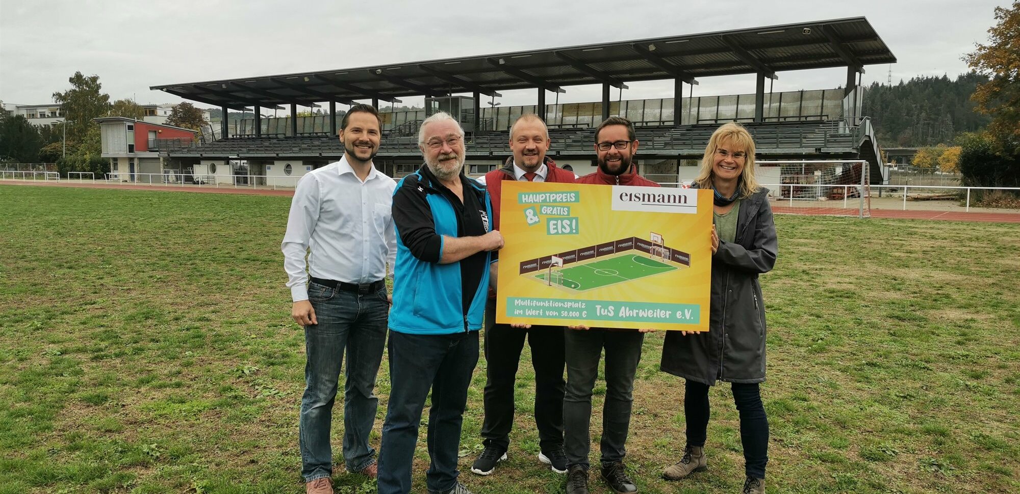 Im Rahmen des Gewinnspiels "Hauptpreis & Gratis-Eis" des Tiefkühl-Lieferdienstes eismann konnten sich Sportvereine deutschlandweit für einen Multifunktionsplatz im Wert von 50.000 Euro bewerben. Die Jury-Mitglieder, bestehend aus Comedian Matze Knop, Manager-Legende Rainer Calmund und Sport-Journalist Tobi Holtkamp, haben sich anschließend für zehn Bewerbungen aus ganz Deutschland entschieden. Daraus wurde in einem öffentlichen Online-Voting der TuS Ahrweiler e.V. als Hauptgewinner und damit Besitzer einer nagelneuen Sportfläche ausgewählt. Die Scheckübergabe fand am 14.10.2022 statt.