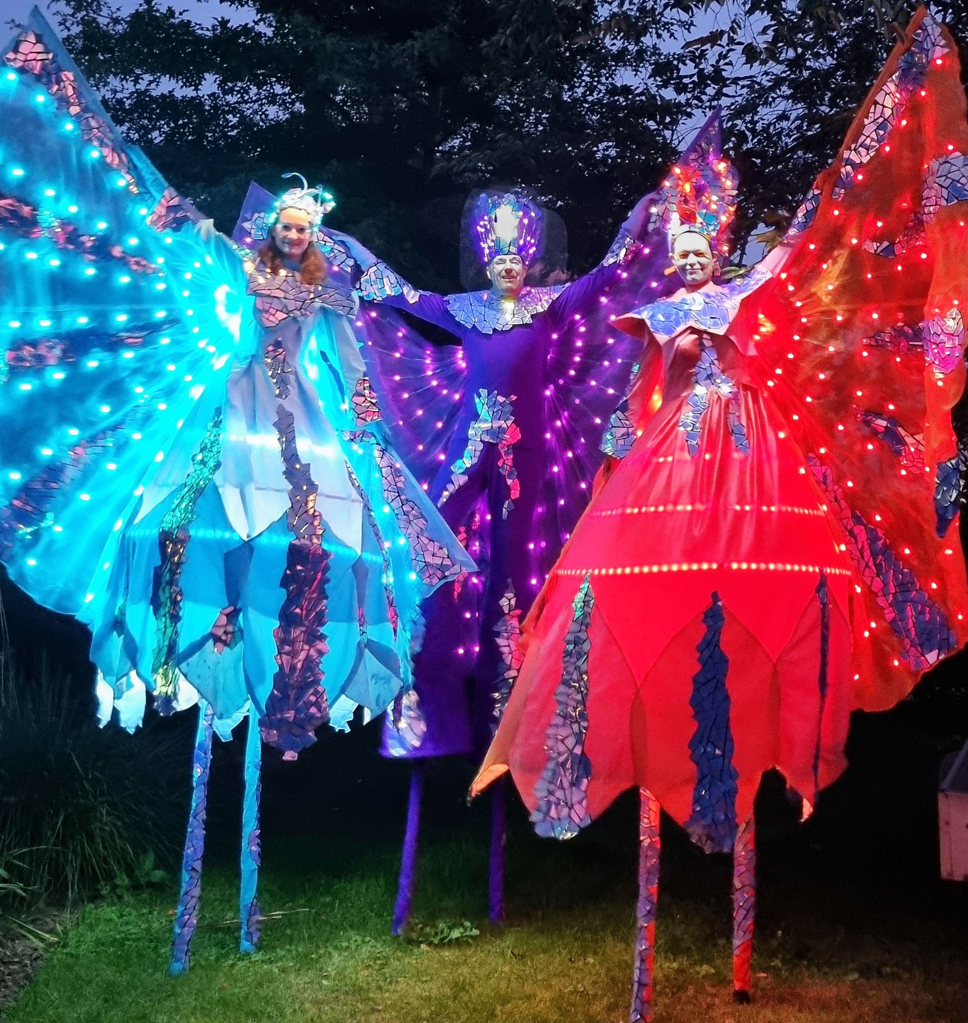 Ein besonderer Höhepunkt sind die „Nachtschwärmer“ am Dienstag, 30. Dezember – poetische Stelzenläufer, die mit Musik, Bewegung und Licht eine eigene Magie entfalten. Ihre kunstvollen, sanft schimmernden Kostüme leuchten im Abendlicht, während sie mit anmutigen Schritten und fließenden Bewegungen durch den Kurpark gleiten. Eine Performance voller Poesie, Leidenschaft und Grazie, die verzaubert.