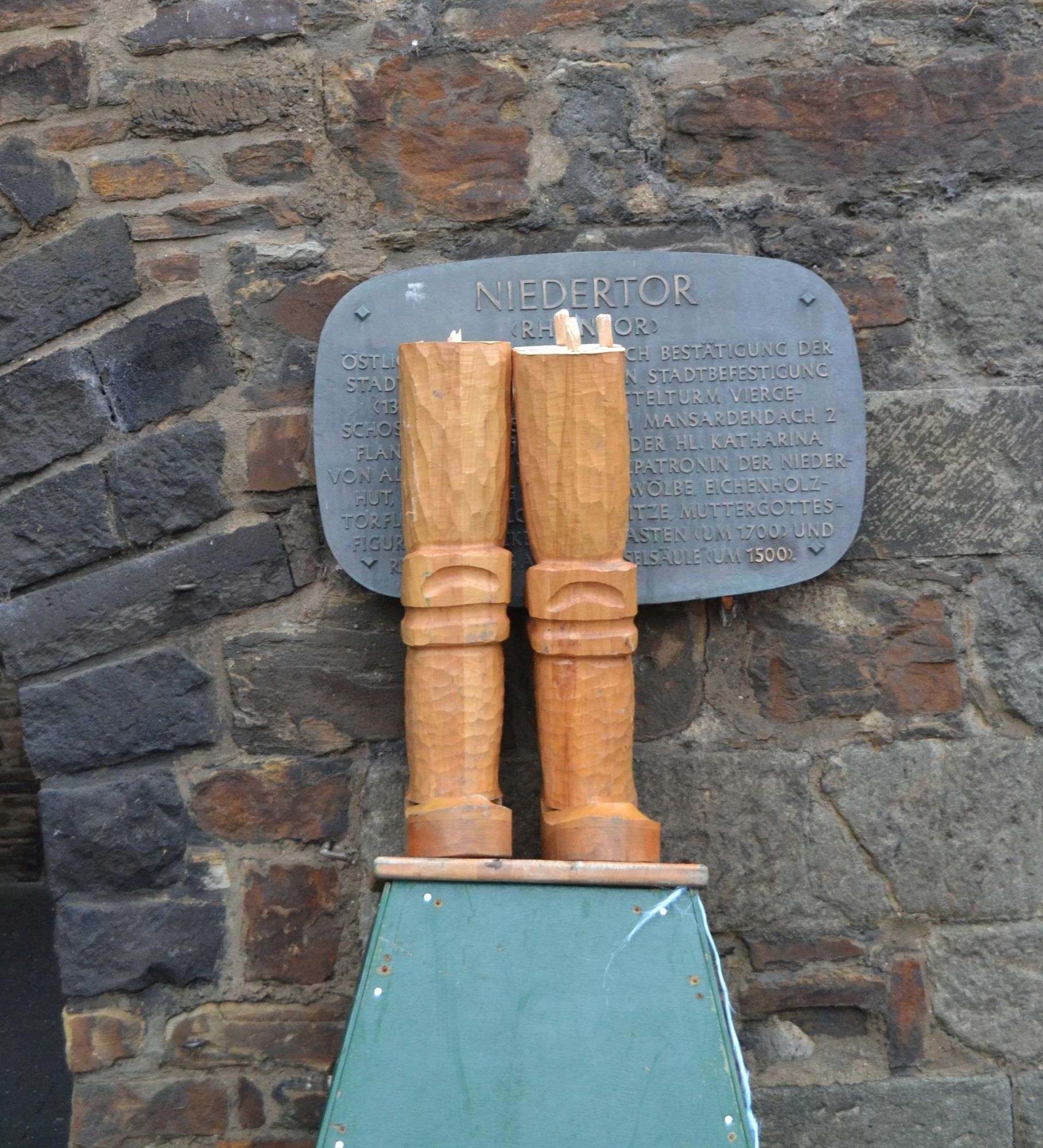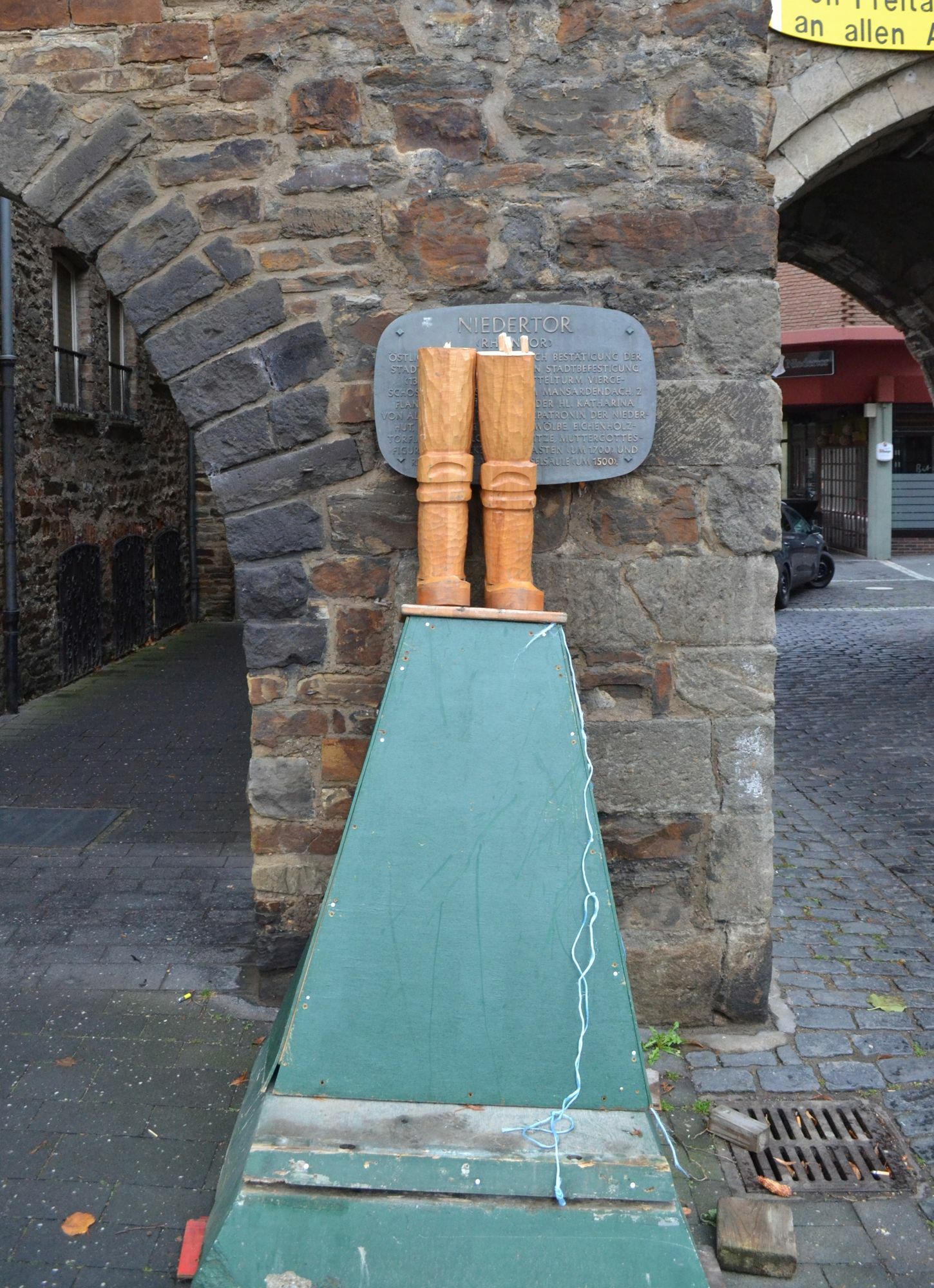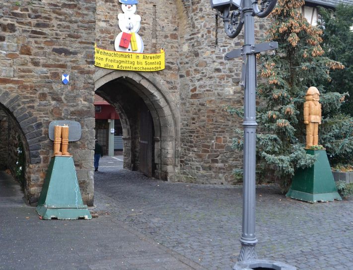 Traditionell werden die Besucher und Einwohner von Ahrweiler in der Aventszeit an den Stadttoren von großen hölzernen Nussknackern begrüßt. Eine der geschnitzten ist nun zerbrochen. Am frühen Samstagmorgen teilte ein Mitarbeiter der Stadtverwaltung Ahrweiler der Polizei mit, dass eine der beiden Nussknacker-Figuren am Niedertor beschädigt wurde. Die Polizei schätzt, dass die Tatzeit in der Nacht von Freitag auf Samstag liegt. Vor Ort zeigte sich, dass der Nussknacker augenscheinlich mutwillig und mit Gewalt zerstört wurde. Der hölzerne Mann zerbrach. Derzeit stehen nur noch seine Beine und das grüne Podest am Niedertor. Der Schaden wird auf rund 2000 Euro geschätzt. Hinweise zu den Tätern liegen der Polizei bislang nicht vor.