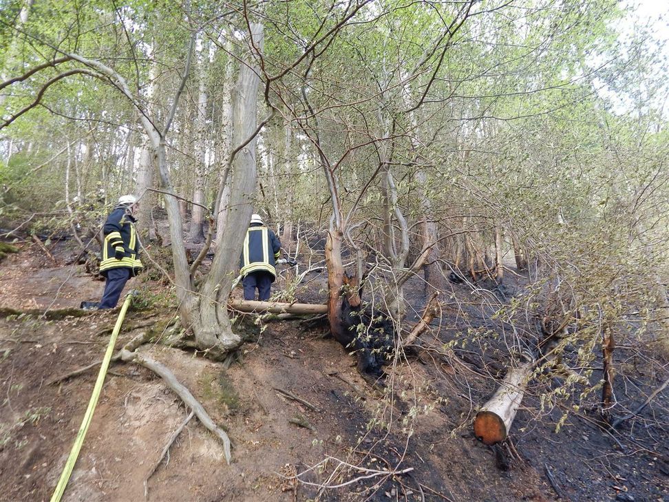 Der Sachschaden wird sich erst durch Forstleute beziffern lassen. Wie es hieß, wurde niemand verletzt. Der Brand war gegen 16.30 Uhr unter Kontrolle und gegen 17 Uhr soweit abgelöscht, dass er sich nicht weiter ausbreitet. Die Aufräumarbeiten selbst zogen sich bis etwa 18 Uhr hin.