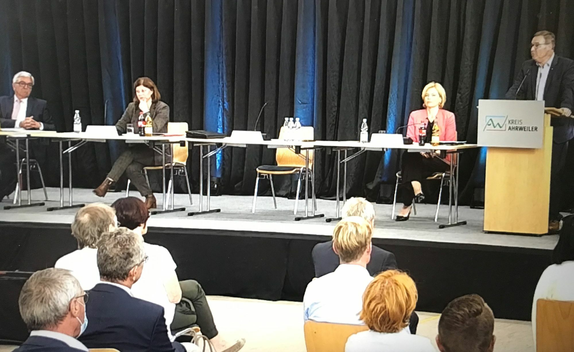 »Wir bauen unser Ahrtal wieder auf!« lautete die Botschaft Horst Gies zu Beginn der ersten Zukunftskonferenz. Die Ideen sollten an diesem Abend vertieft und formuliert werden. Dies geschah nach den Ansprachen von Bundesministerin Julia Klöckner, Staatssekretärin Nicole Steingaß und Staatssekretär im Bundesinnenministerium Dr. Helmut Teichmann, die alle ihre Unterstützung zusagten. Letzterer versprach, Kräfte für die allgemeine Verwaltung zur Verfügung zu stellen. Eine Forderung, die der 1. Beigeordnete Gies klar formulierte. Der Arbeitsplan sah sechs »World Cafés« in der nahegelegenen Grundschule mit den Themen: »Natur, Bauen & Hochwasserschutz«, »Tourismus & Weinbau«, »Gesundheit«, »Wirtschaft«, »Infrastruktur & Versorgung« und »Arbeit & Soziales« vor. Die Teilnehmer konnten sich jeweils drei Bereiche auswählen. Gemeinsam mit Fachleuten wurden Ideen gesammelt und von Moderatoren im Anschluss wieder in der MHZ vorgestellt. Zum Beispiel im »Tourismus« solle man moderner werden und den Ausbau von Fahrradwegen forcieren. »Wir wollen Licht ins Tal bringen«, so eine Aussage. Eine zweite Zukunftskonferenz – dann unter Federführung des Landes – soll noch in diesem Monat stattfinden.