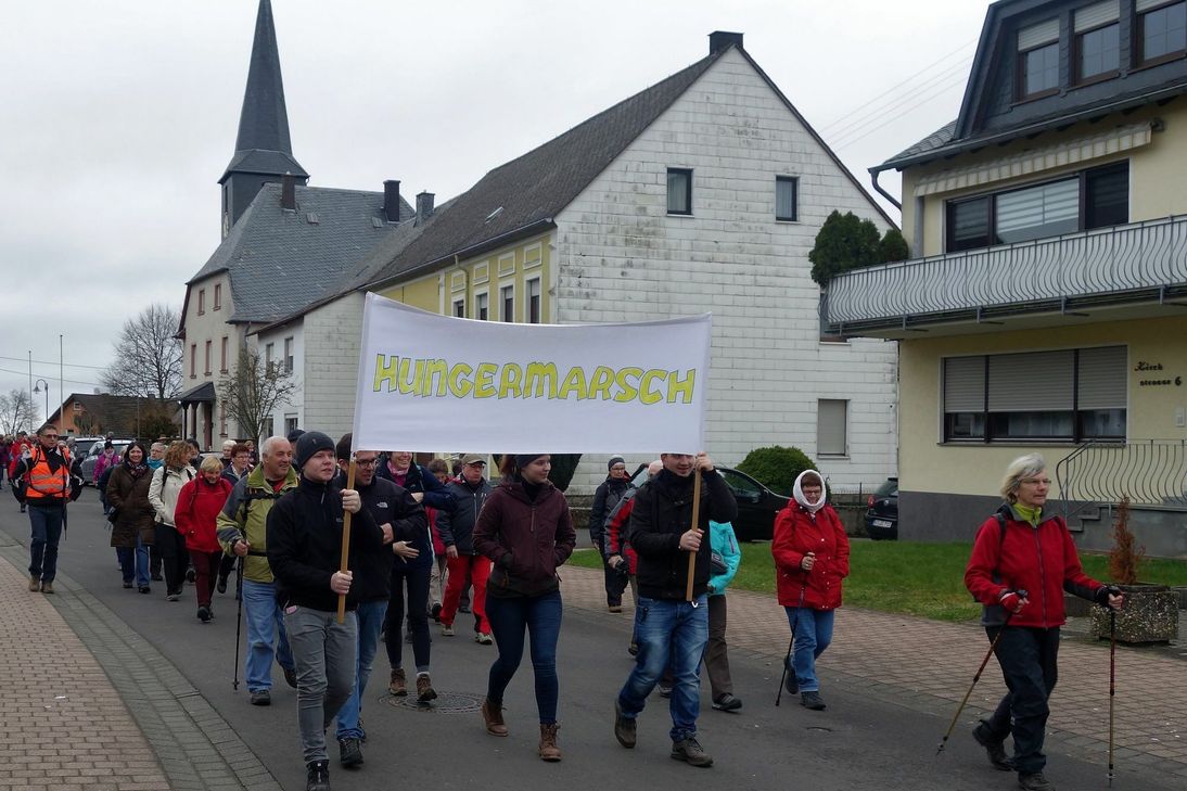 Der 29. Hungermarsch stand unter dem Motto „Schritte zum Frieden“. Die rund 100 Teilnehmer marschierten nicht nur mehr als 1,5 Millionen Schritte für den Frieden, sondern trugen auch zu einem Superergebnis bei: Insgesamt gab es für das Projekt „Schulerweiterung Kokounkoutou“ einen Spendenerlös von 5.224 Euro. Das Thema „Frieden“ zog sich über den ganzen Tag hin. Es begann mit dem Ökumenischen Gottesdienst in Monzelfeld, gestaltet von Gemeindereferentin Doro Berresheim und Christine Schmitz. Für die musikalische Begleitung sorgte Markus Thome mit dem Chor „vox in viam“. Eine Überraschung erlebten die Wanderer, als sie an die Grundschule Monzelfeld kamen: Afrikanische Trommelmusik erklang aus dem Innern. Die Monzelfelder, die eine Patenschule in Ogotene / Mali haben, wollten damit den Wanderern ein wenig afrikanische Atmosphäre mit auf den Weg geben. Anschließend ging es weiter zu den Stationen in Gonzerath (Teepause) und Hundheim mit einer leckeren Suppe zum Abschluss. Fotos: privat