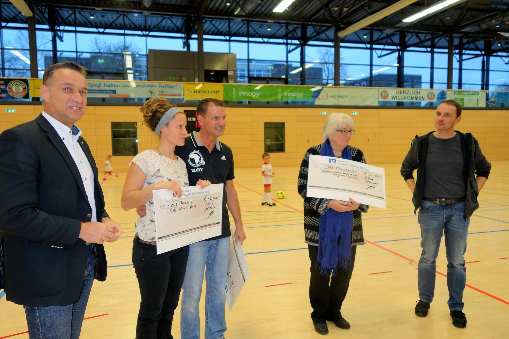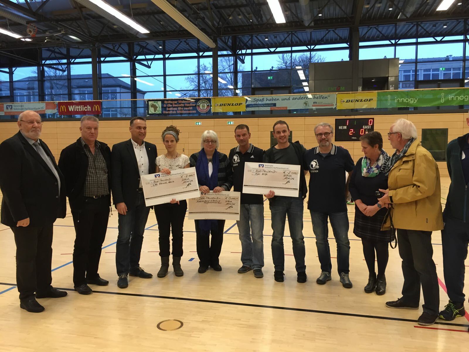 Mit einem tollen Benefiz Hallenturnier endet für die Benefiz Radler das Jahr 2016. Für Begeisterung sorgten die kleinsten Akteure der Bambini, F-Jugend und E-Jugend. Denn hier waren neben Mama und Papa auch Oma und Opa mit angereist, um ihre Lieblinge zu unterstützen. Es war ein wunderschönes Wochenende, das im nächsten Jahr schon im Kalender der Benefiz Radler und der meisten Teams notiert ist. Im Mittelpunkt des Geschehens stand wie immer der gute Zweck. Und es hat sich absolut gelohnt! So konnten am Sonntag Nachmittag insgesamt 8000 Euro Spenden an den Kinderschutzbund Mehrgenerationenhaus (3000 €), das Kinderhilfsprojekt Little Prinz in Kenya (2000 €), ein Schulprojekt des Kinderbuchautors Stefan Gemmel und der Mali Hilfe (2000 €) und an die Krebsgesellschaft Trier mit Uwe Heinsdorf und seinem Team Kicker gegen Krebs (1000 €) überreicht werden. Fotos:FF