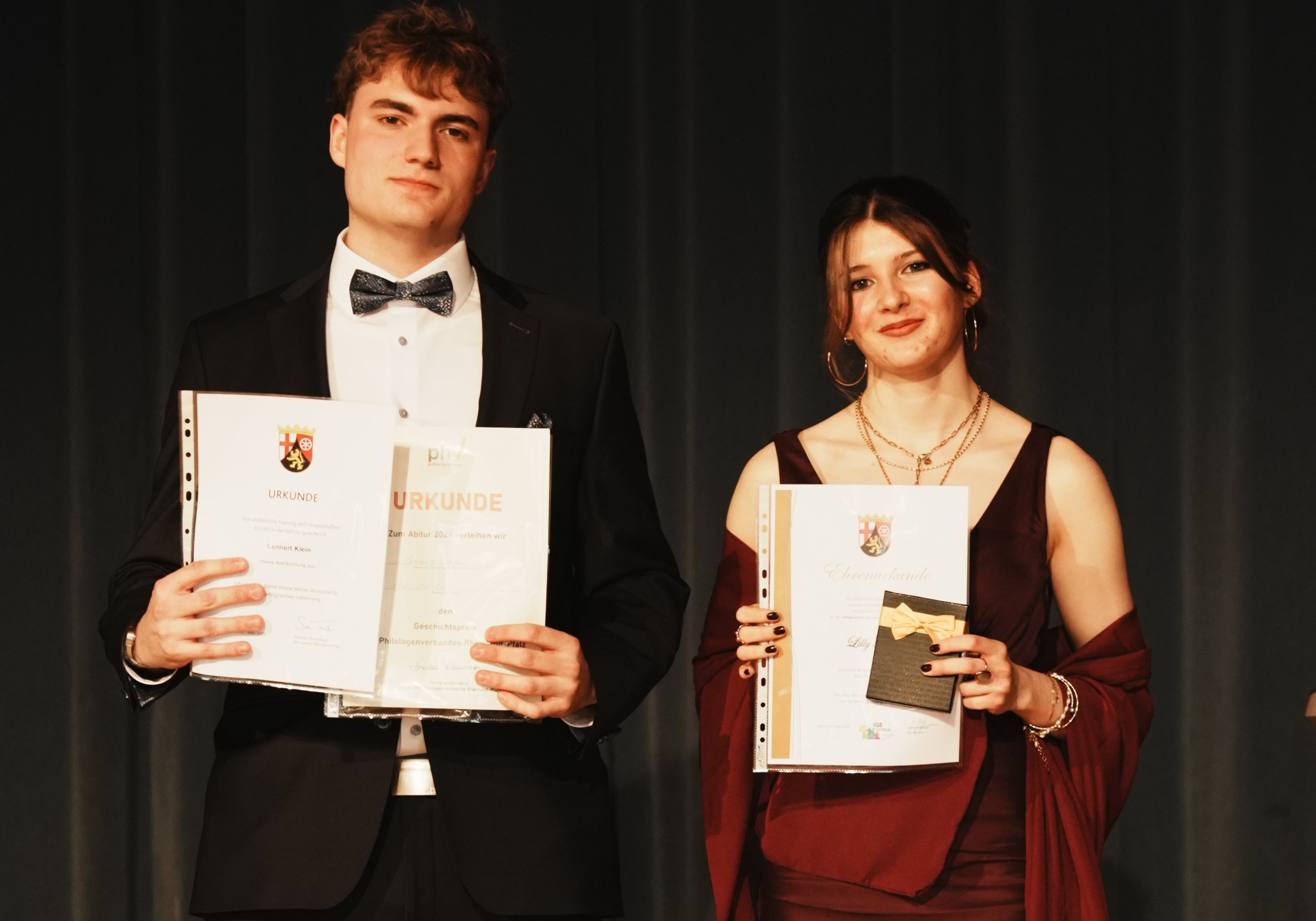 Besondere Auszeichnungen erhielten Lilly Teusch für das beste Abitur sowie Lennert Klein, der sowohl mit dem Geschichtepreis als auch mit dem Preis des Ministerpräsidenten geehrt wurde. Im inoffiziellen Teil sorgten die Ergebnisse der Schülerabstimmungen mit originellen Kategorien für viele Lacher. Ein Höhepunkt war zudem das spannende Schüler-Lehrer-Quiz, das die Schüler knapp für sich entscheiden konnten.